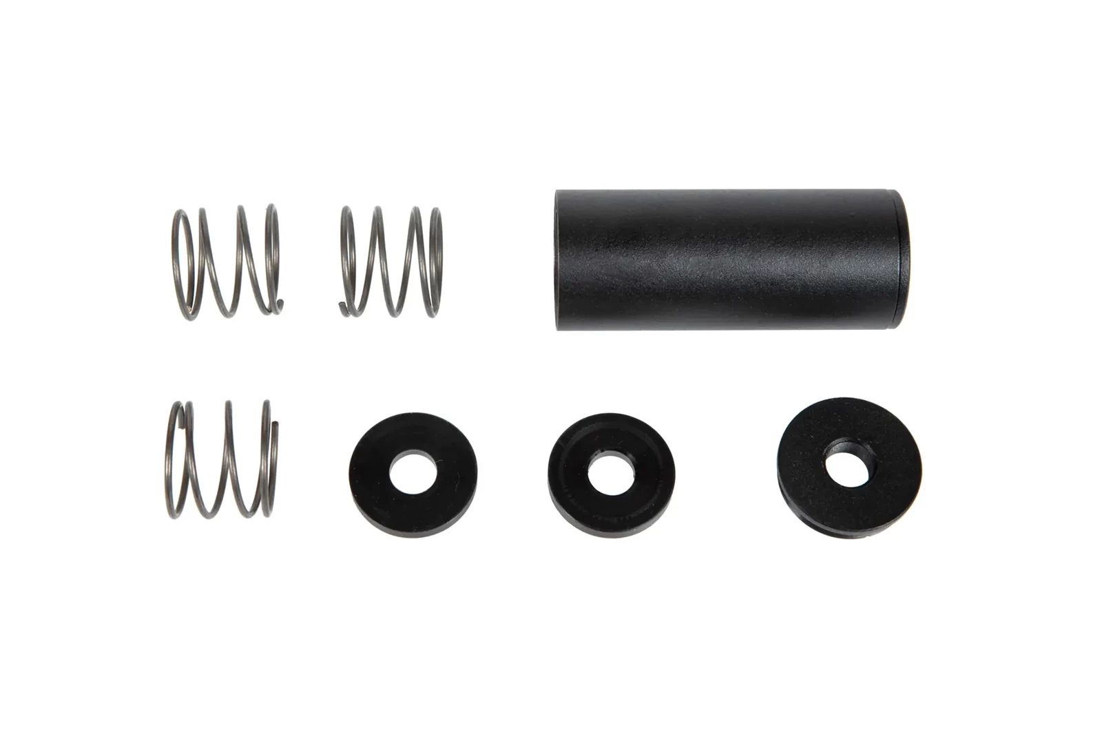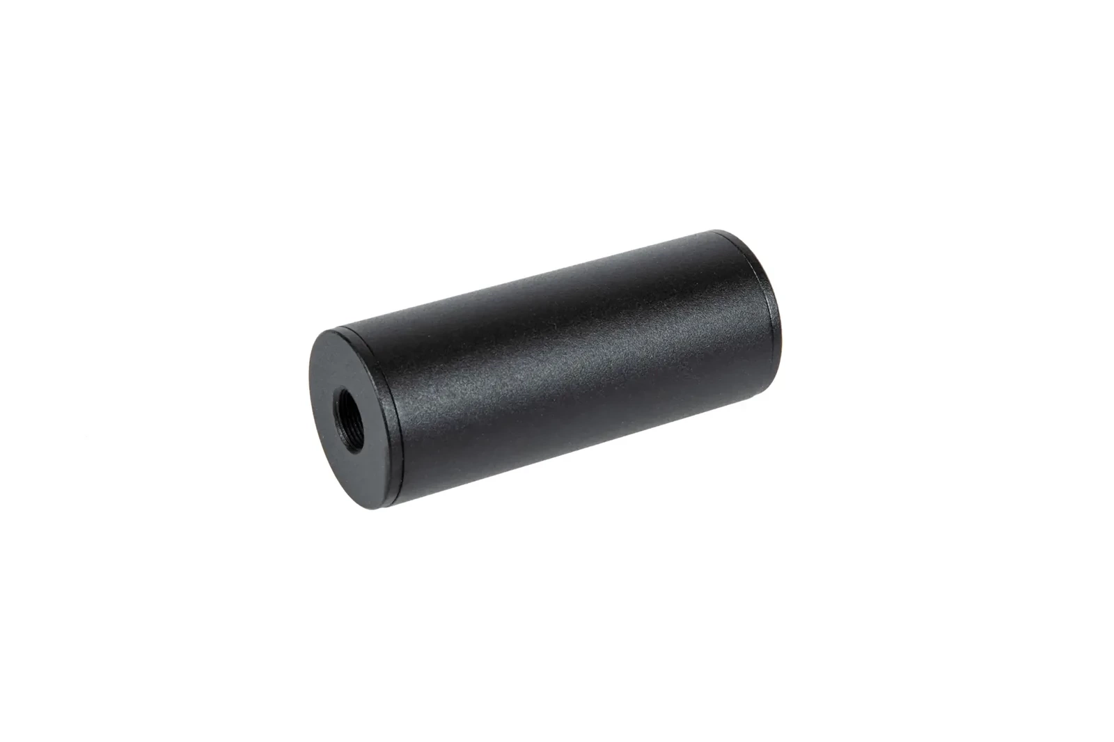 Tłumik wykonany z aluminium PA6 na tokarkach CNC, obustronnie zakończony gwintem 14 mm, tak prawo- jak i lewoskrętnym. Zaopatrzony w komory tłumiące z tworzywa i sprężyn zapewniające bardzo dobre właściwości tłumiące.