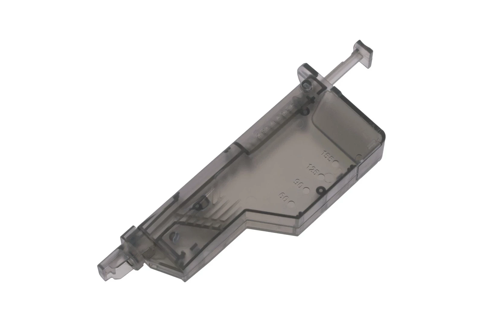 Wykonana z tworzywa sztucznego kompaktowa szybkoładowarka o pojemności 155 kulek, pozwalająca sprawnie napełnić amunicją każdy rodzaj magazynka real/low/mid-cap. Bez problemu zmieści się w kieszeni bądź ładownicy na magazynek STANAG.