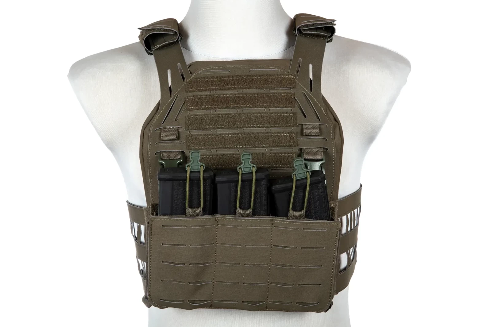 -Panel przedni posiada miejsca na 3 magazynki 5,56, zabezpieczone shockcordem.