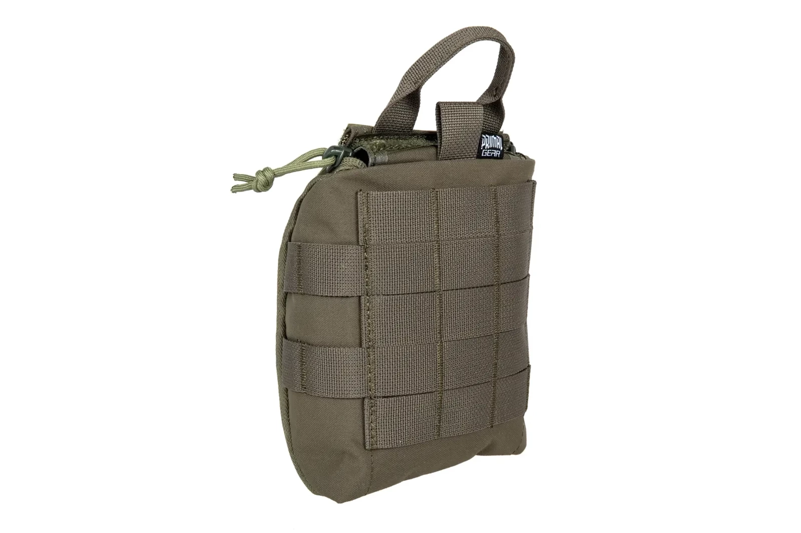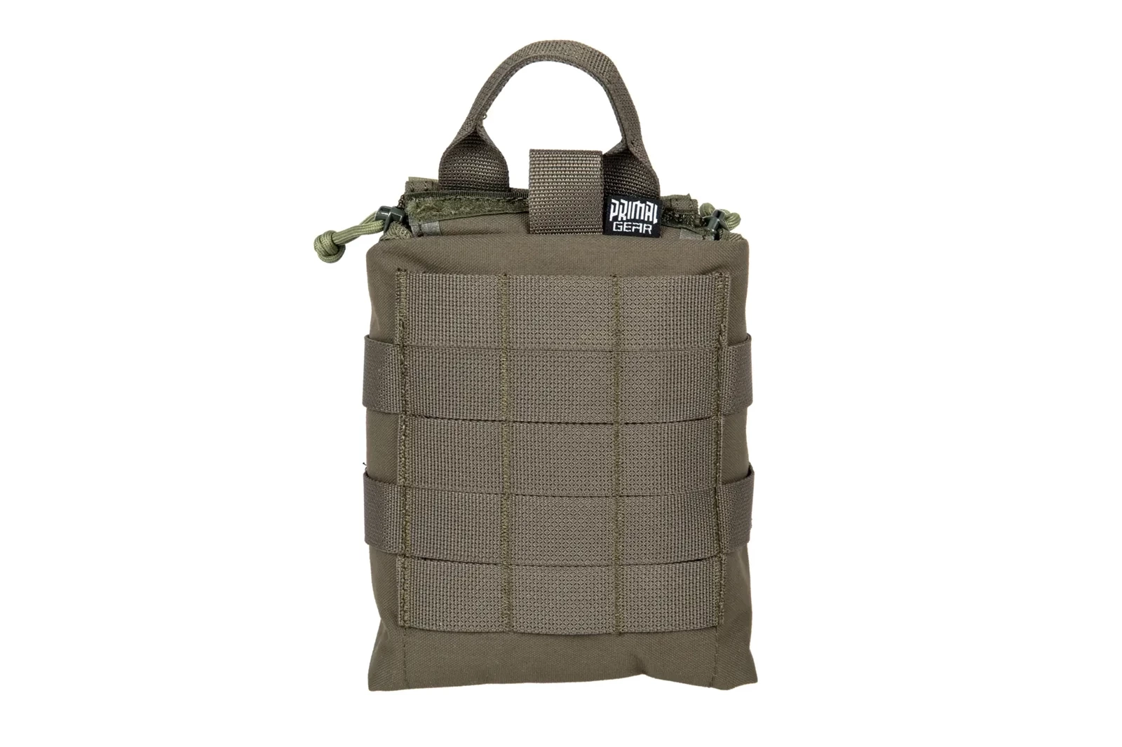 Na zewnątrz apteczki znajduje się duży uchwyt, umożliwiający szybkie dostanie się do zawartości. Boki są obszyte pasami PALS. Góra przodu posiada miejsce na rzep.