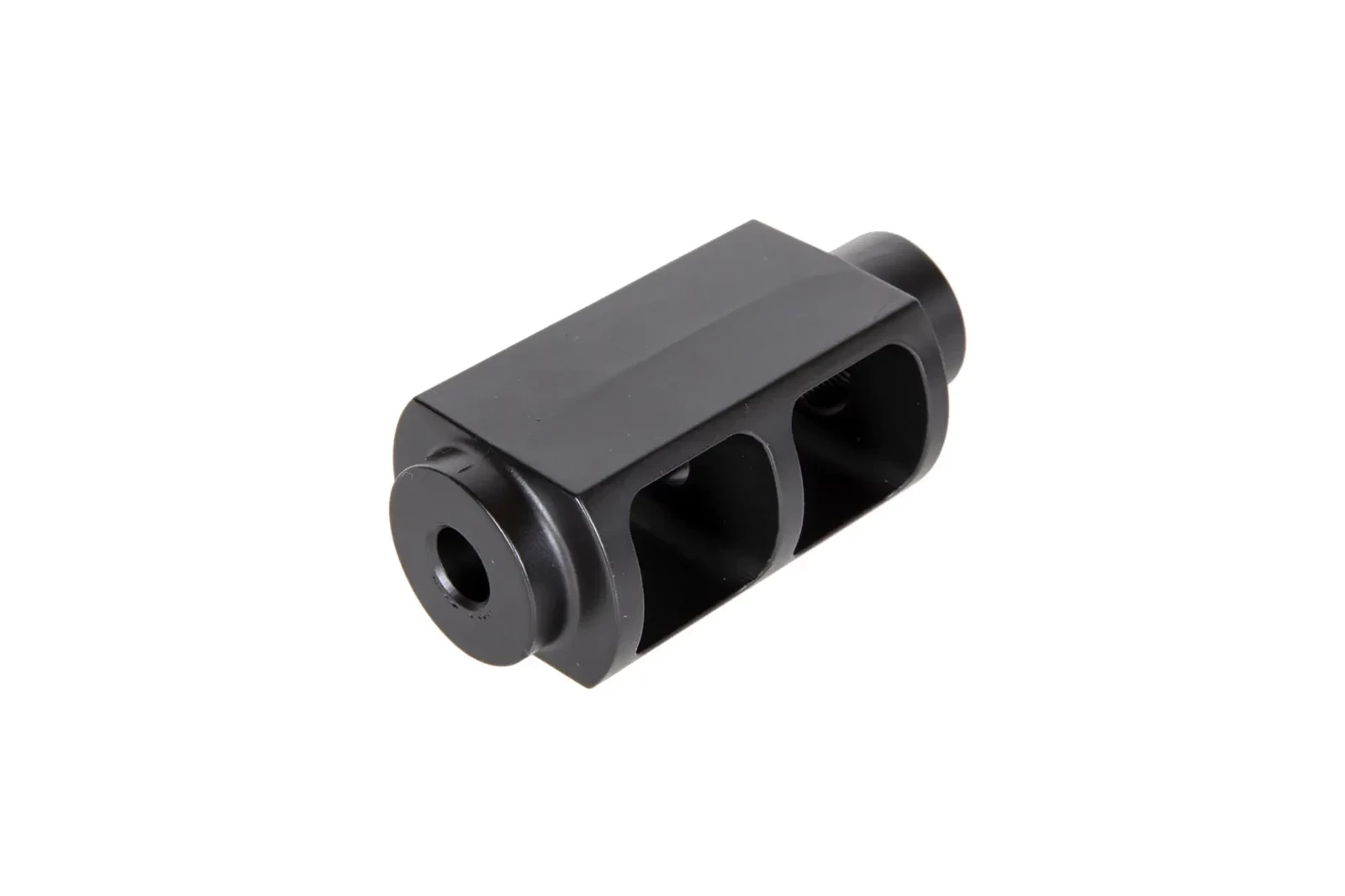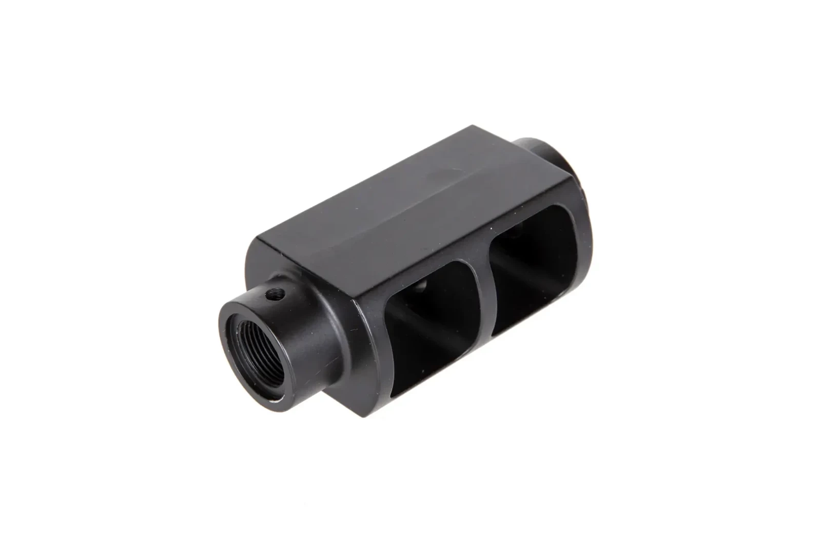 Urządzenie wylotowe wykonane z wytrzymałego aluminium, popularny hamulec wylotowy spotykany przy konstrukcjach wielkokalibrowych teraz dostępny na standardowym gwincie 14mm CCW.