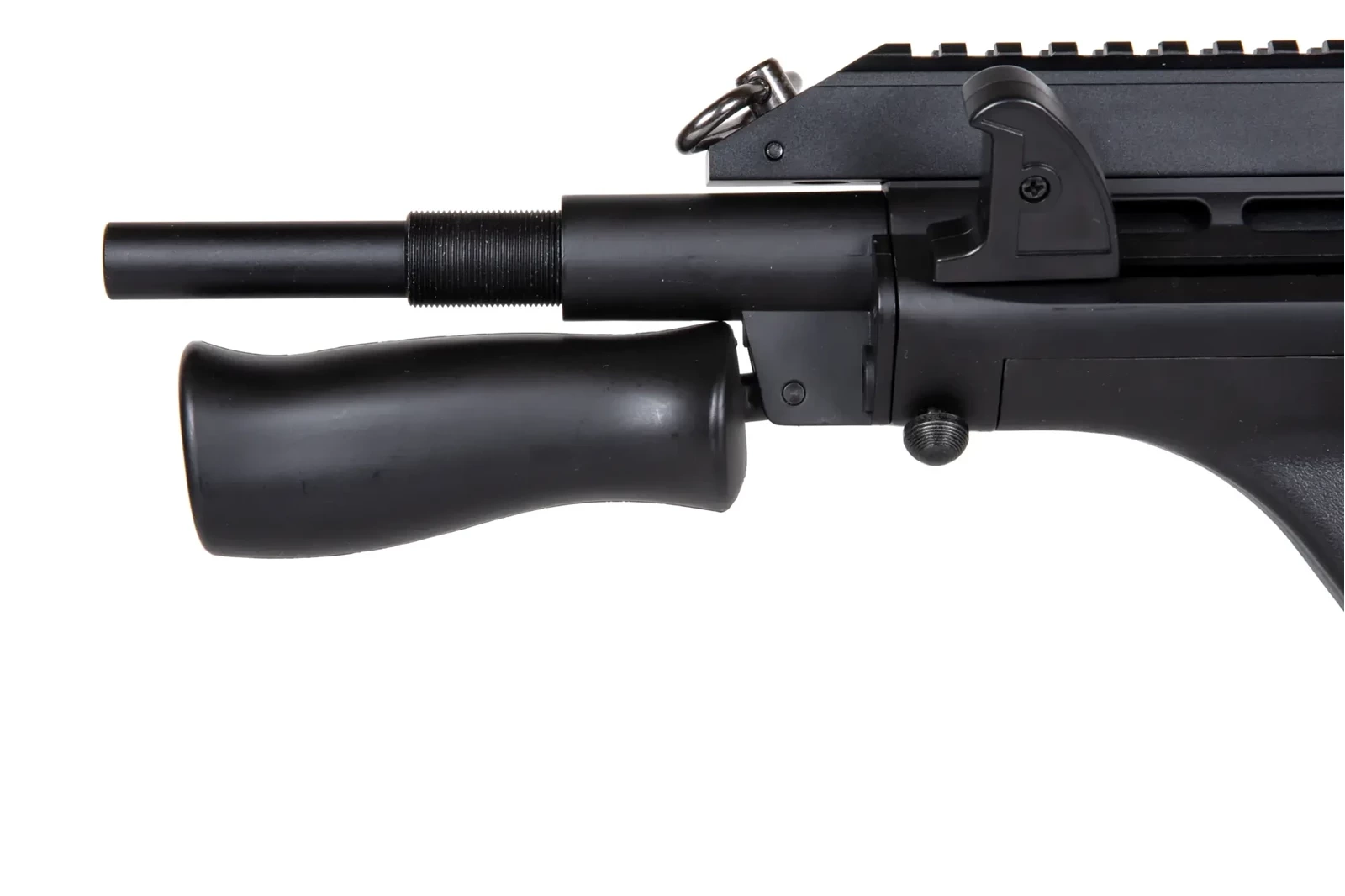 W przeciwieństwie do większości karabinów w systemie bullpup, ten jest dość przyjazny również dla użytkowników leworęcznych. Natomiast samo umieszczenie magazynka za układem spustu pozwoliło wydłużyć lufę (a co za tym idzie - poprawić celność) przy jednoczesnym zachowaniu znacznej manewrowości repliki.
