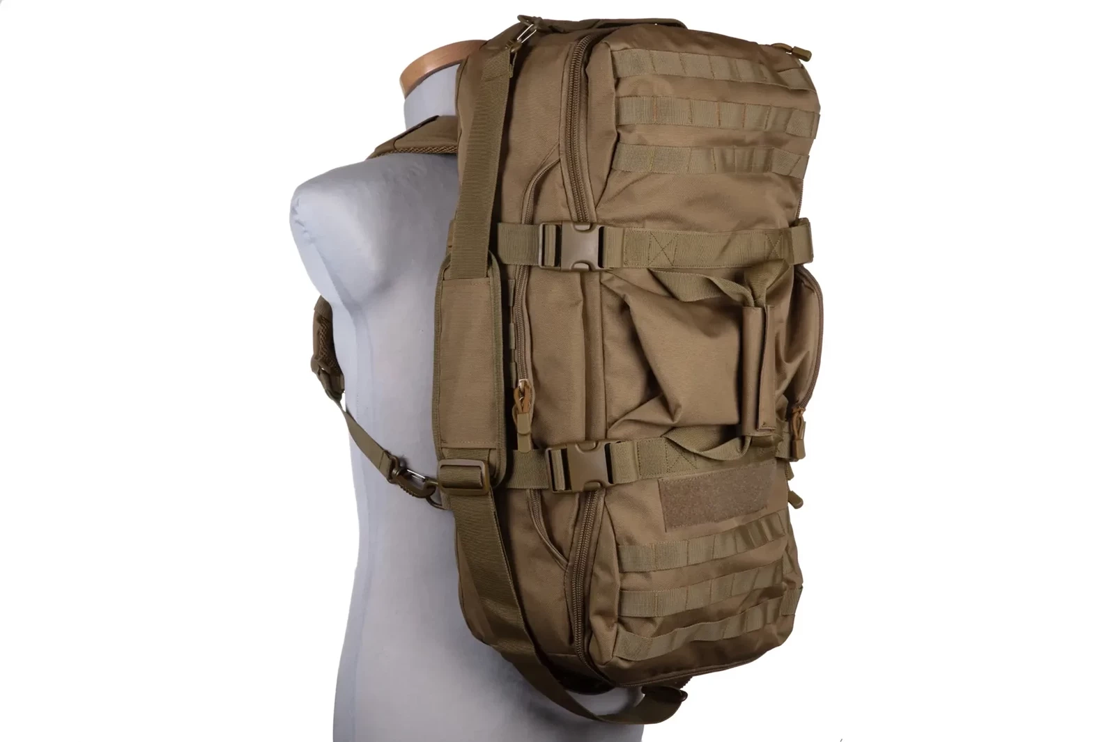 Obszerny plecak wykonany z wytrzymałego Nylonu 500D. Model cechuje wysoka funkcjonalność dzięki wielu kieszeniom wewnętrznym oraz zewnętrznym i możliwości przekształcenia plecaka w torbę podręczną lub torbę na ramię