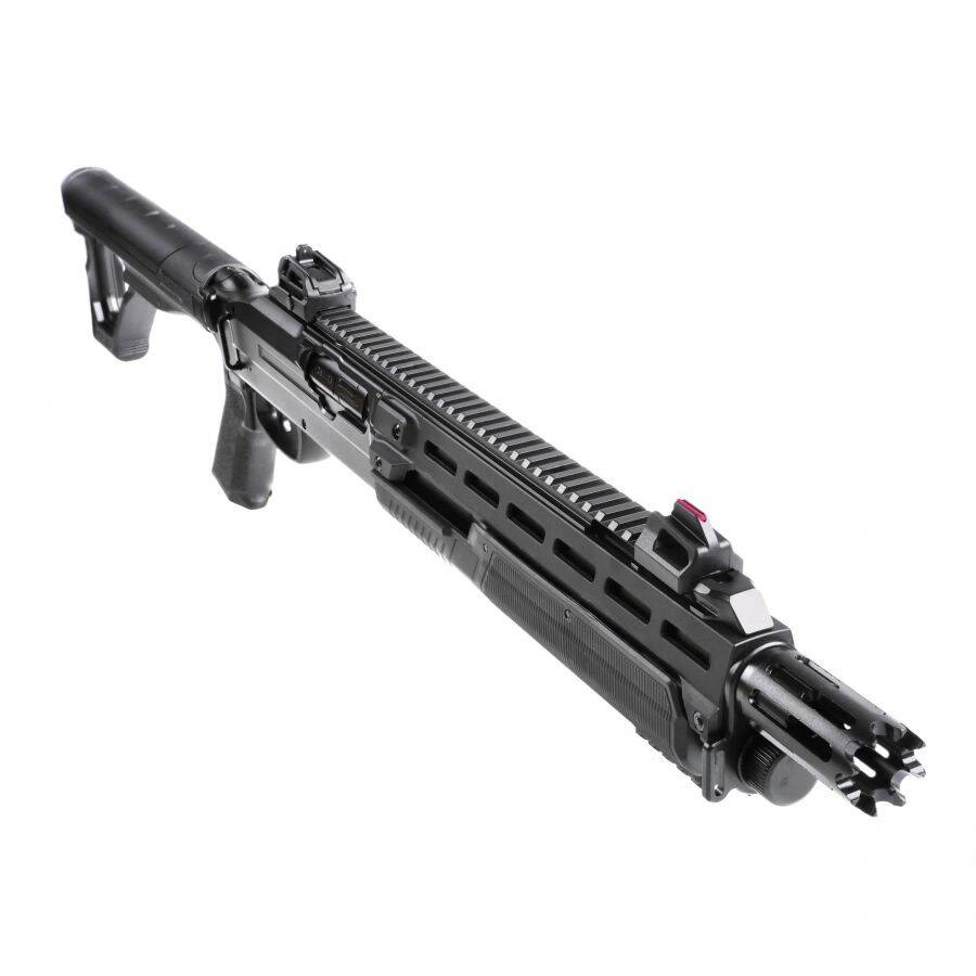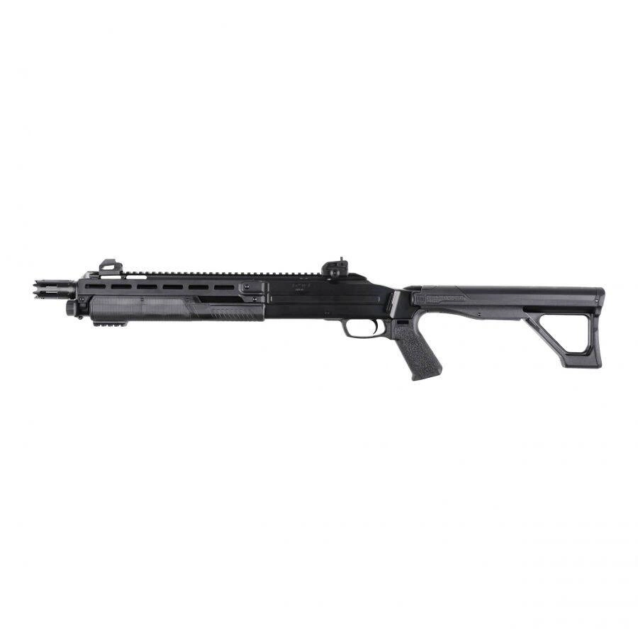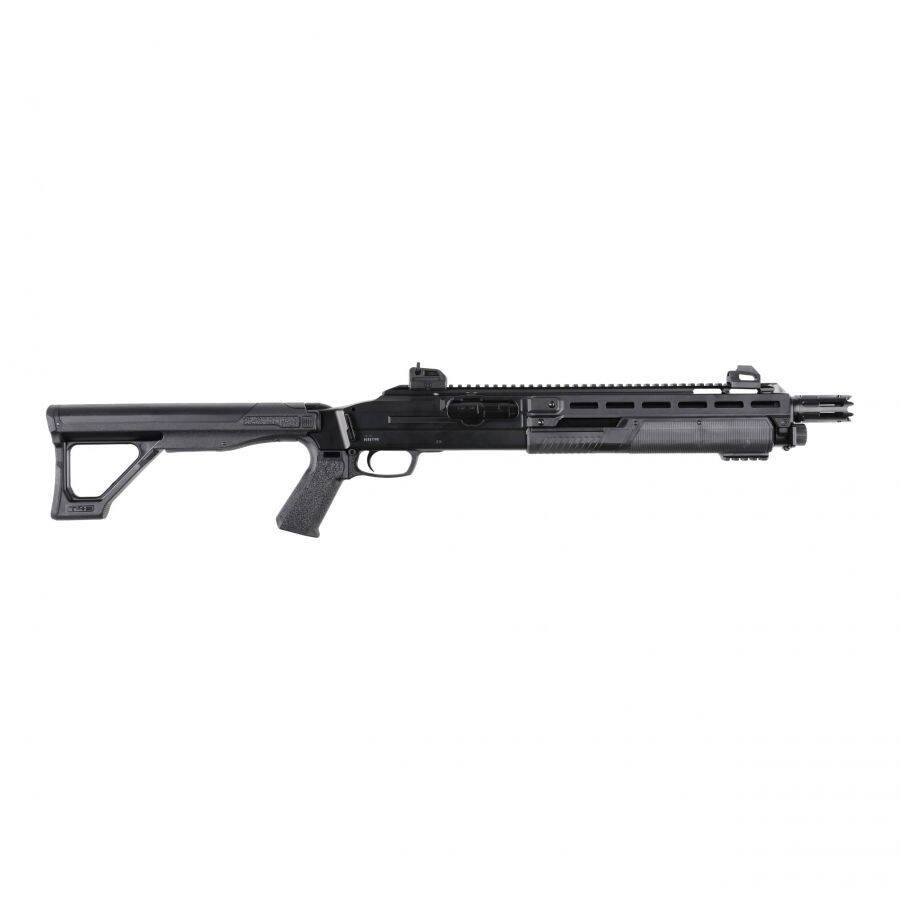 - Taktyczny Wygląd: konstrukcja strzelby nawiązuje do taktycznych strzelb gładkolufowych systemu pump-action, używanych m.in. przez służby mundurowe.