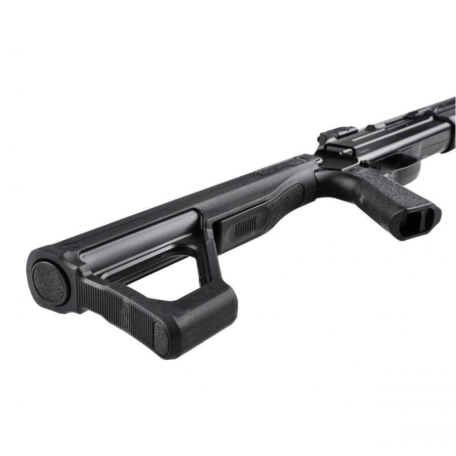 - Zasilanie kapsułami CO2: zasilana dwoma kapsułami CO2 12 g, montowanymi pod kolbą w metalowym adapterze.