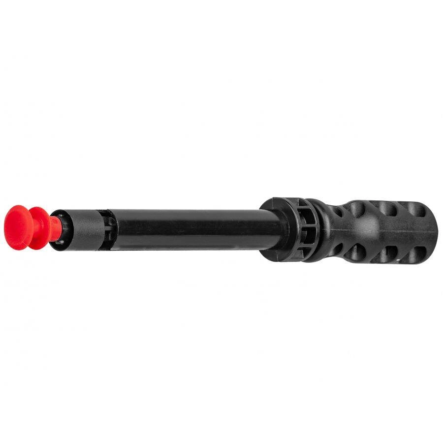 Wycior wykonano z wytrzymałego tworzywa sztucznego, odpornego na działanie środków do czyszczenia broni. Gumowana końcówka z dwoma tarczkami skutecznie usuwa wszelkie zanieczyszczenia zalegające w lufie. Dzięki sztywnej konstrukcji wycior może być także używana do usuwania kul, które utknęły w lufie.