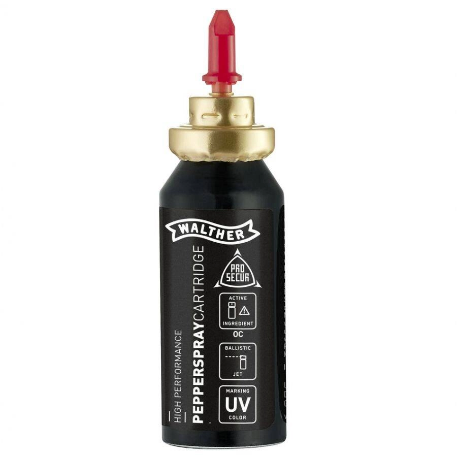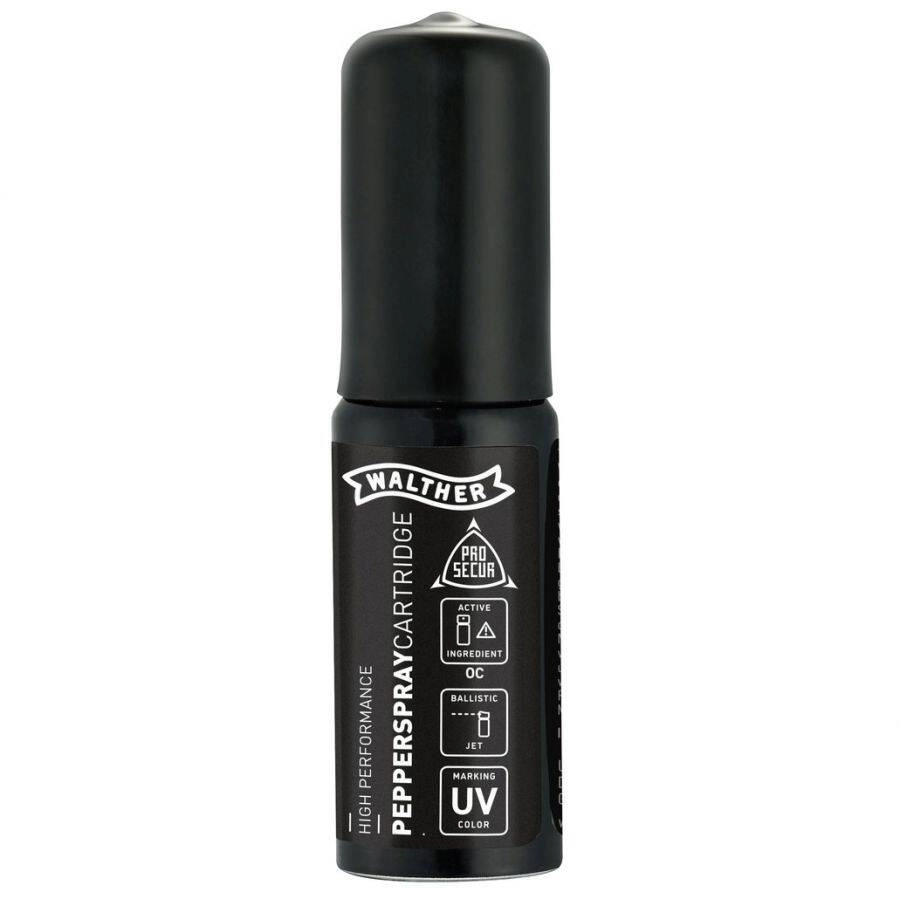 Wkład zawiera gaz obronny Walther PRO SECUR, zawiera biologiczny środek pieprzowy o 10% stężeniu i wyjątkowej ostrości aż 2 mln SHU. Skoncentrowany strumień żelu pieprzowego ma skuteczny zasięg nawet do 5 metrów. Gaz w postaci żel może być precyzyjnie stosowany, doskonale przylega do skóry i odzieży, jest również mniej podatny na działanie bocznych podmuchów wiatru. W gazie zawarto barwnik znakujący UV, umożliwiający błyskawiczną identyfikację sprawcy po ujęciu go przez Policję.