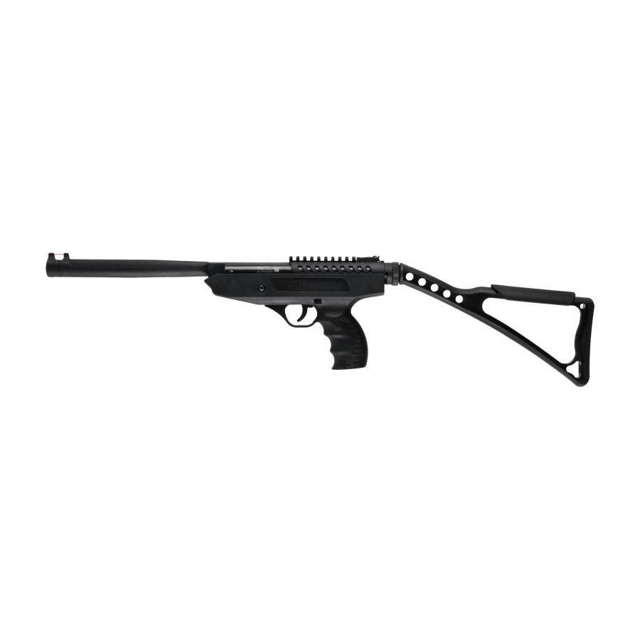 Na komorze tłokowej znajduje się dodatkowo szyna Picatinny, która umożliwia również mocowanie lunety pistoletowej lub celownika kolimatorowego. W komplecie otrzymujemy odłączaną kolbę, która pozwala na stabilne oparcie wiatrówki na ramieniu. Dzięki takiej funkcjonalności pistolet można błyskawicznie przeistoczyć w karabinek wiatrówkowy, który za sprawą dodatkowego punktu oparcia — pozwala na precyzyjne i powtarzalne strzelanie.