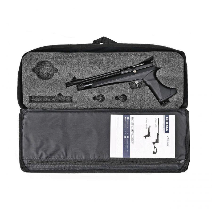 W komplecie z pistoletem wiatrówkowym Diana Chaser 4,5 mm otrzymujemy praktyczną torbę transportową zapinaną na zamek błyskawiczny.