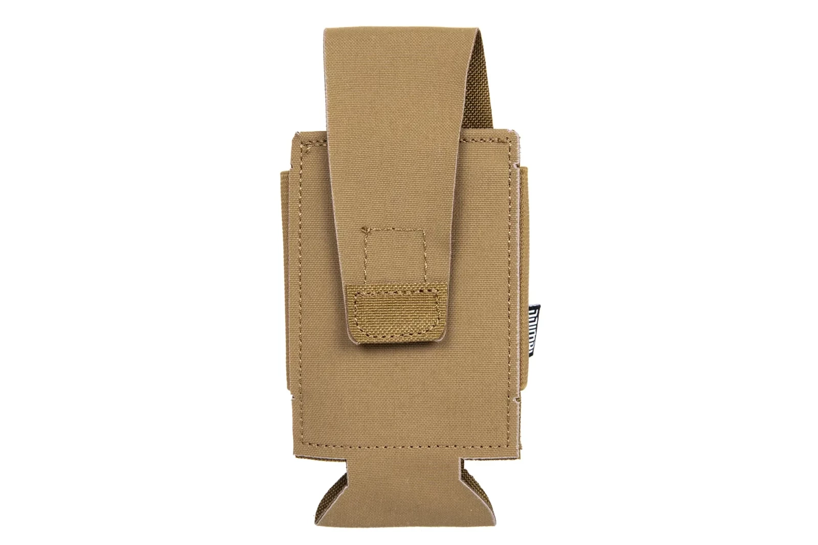 Kieszeń na granat dymny wykonana z wysokiej jakości materiału. Elastyczne boki zasobnika oraz głębokie dno i klapa zapinana na rzep pozwala na dopasowanie kieszeni do różnych granatów różnych rozmiarów lub pojemnika z gazem.