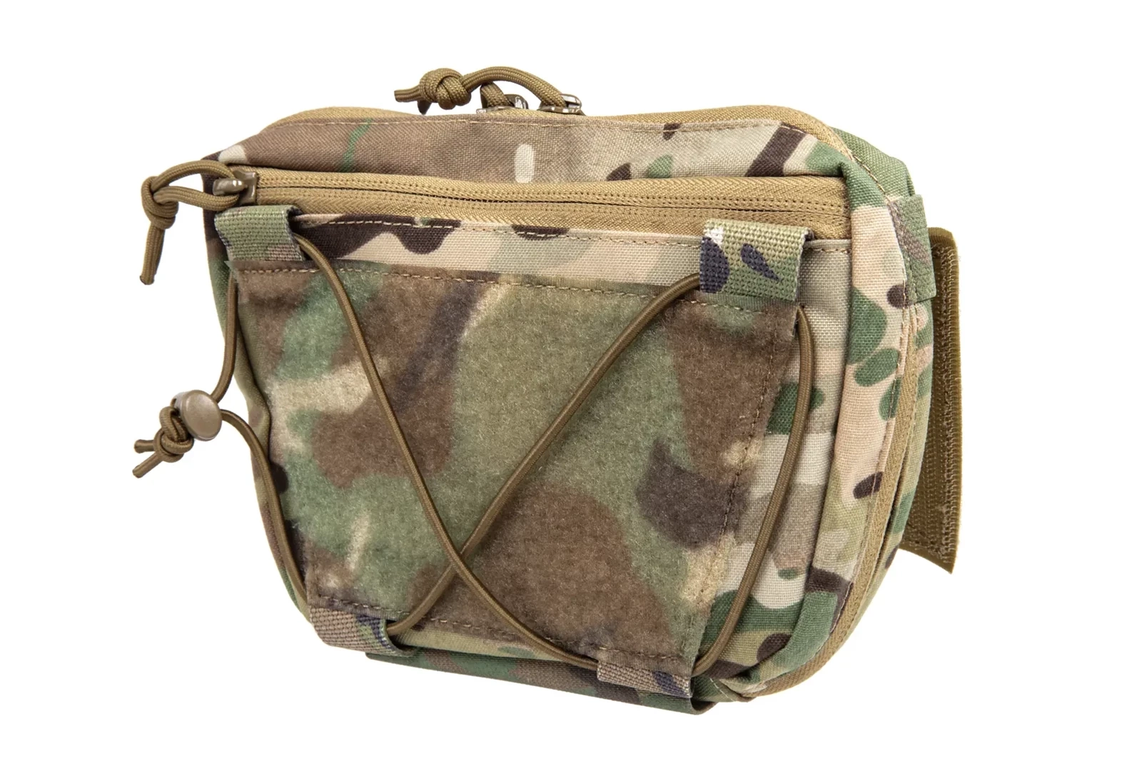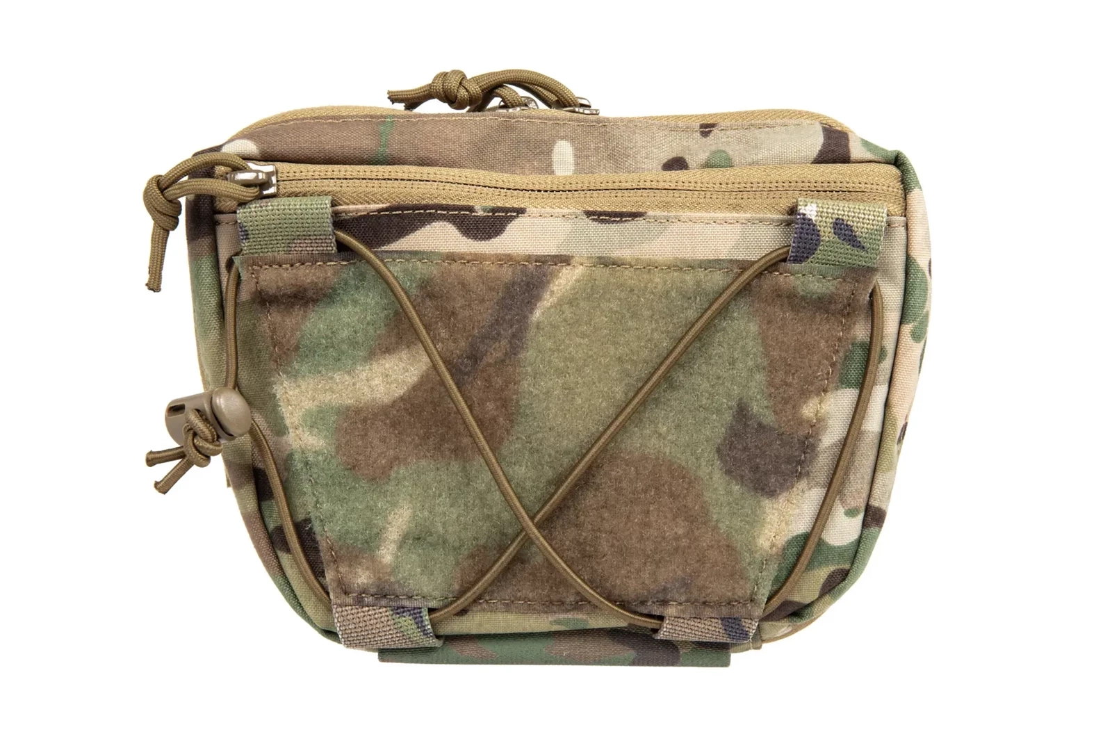 Front kieszeni posiada rzep wraz z linkami elastycznymi, co zwiększa przestrzeń transportową. Spód zaś wyposażony jest w rękaw na np. bandaż lub staze taktyczną