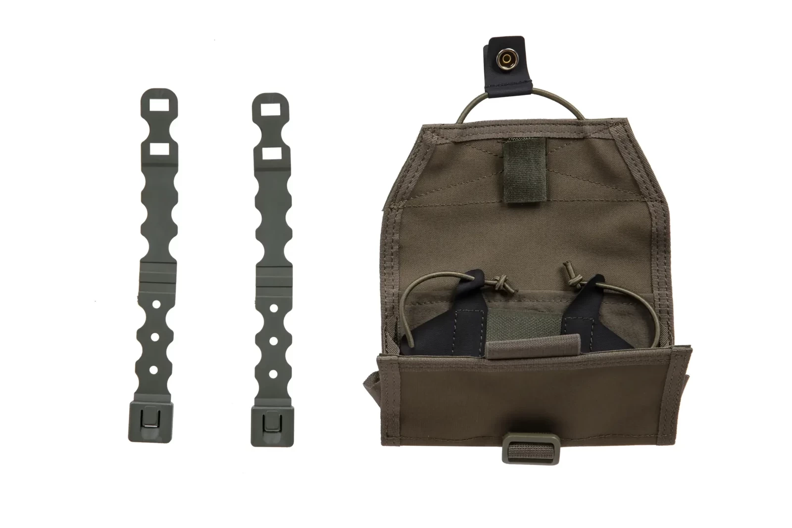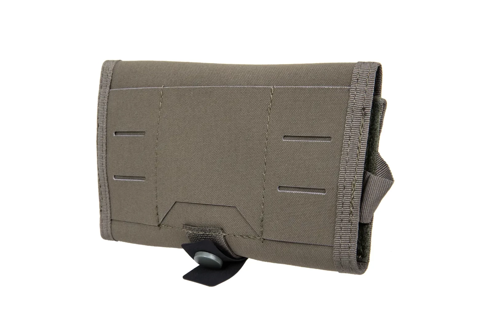 Tył kieszeni ma panel Molle wykonany metodą Laser-Cut. W zestawie są dodatkowo zaczepy w systemie Molle, co pozwala przymocować kieszeń do paska