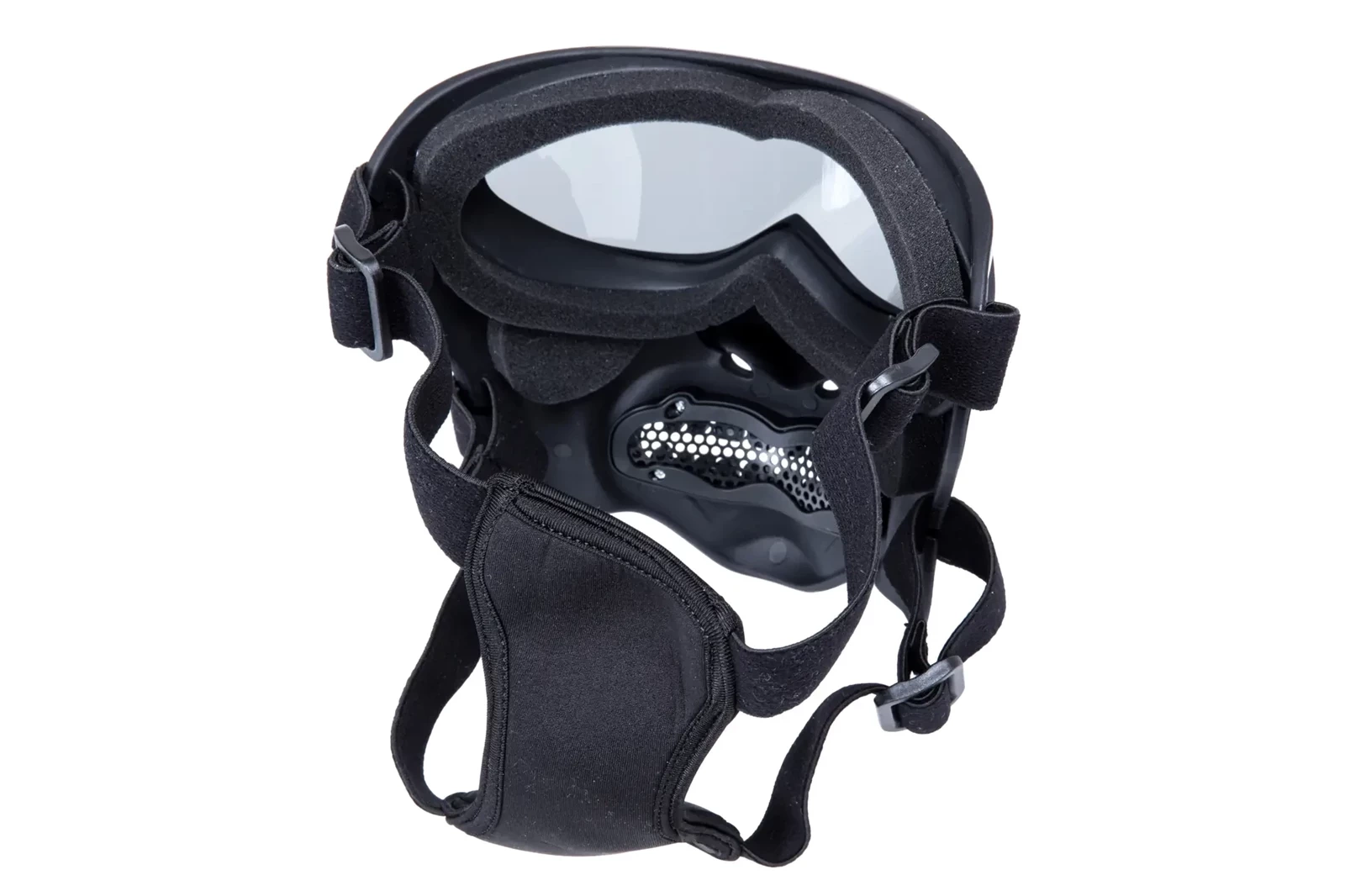 W skład zestawu wchodzą 2 komplety pasków - jeden zestaw pozwala na doczepienie maski do hełmu/kasku taktycznego, drugi zaś pozwala na noszenie maski na głowie.