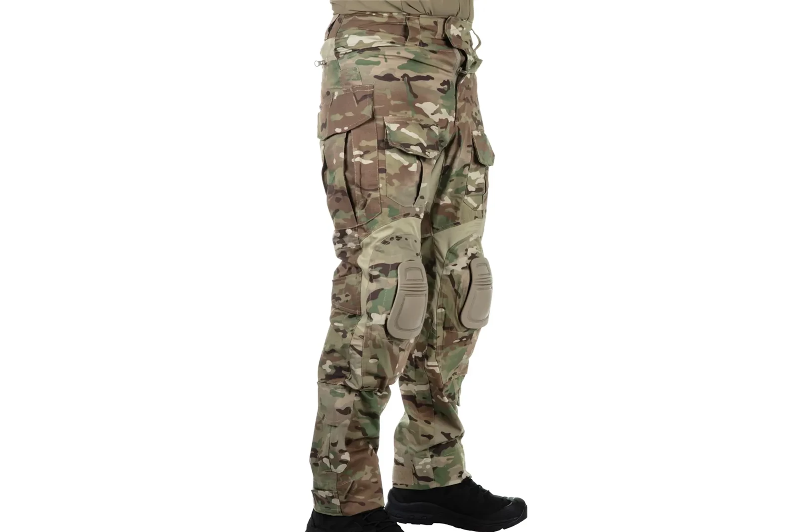 Obwód nogawek przy nakolannikach i w dolnej części można regulować za pomocą rzepów, w miejscu kolan znajdują się nakolanniki, wykonane z mocnego