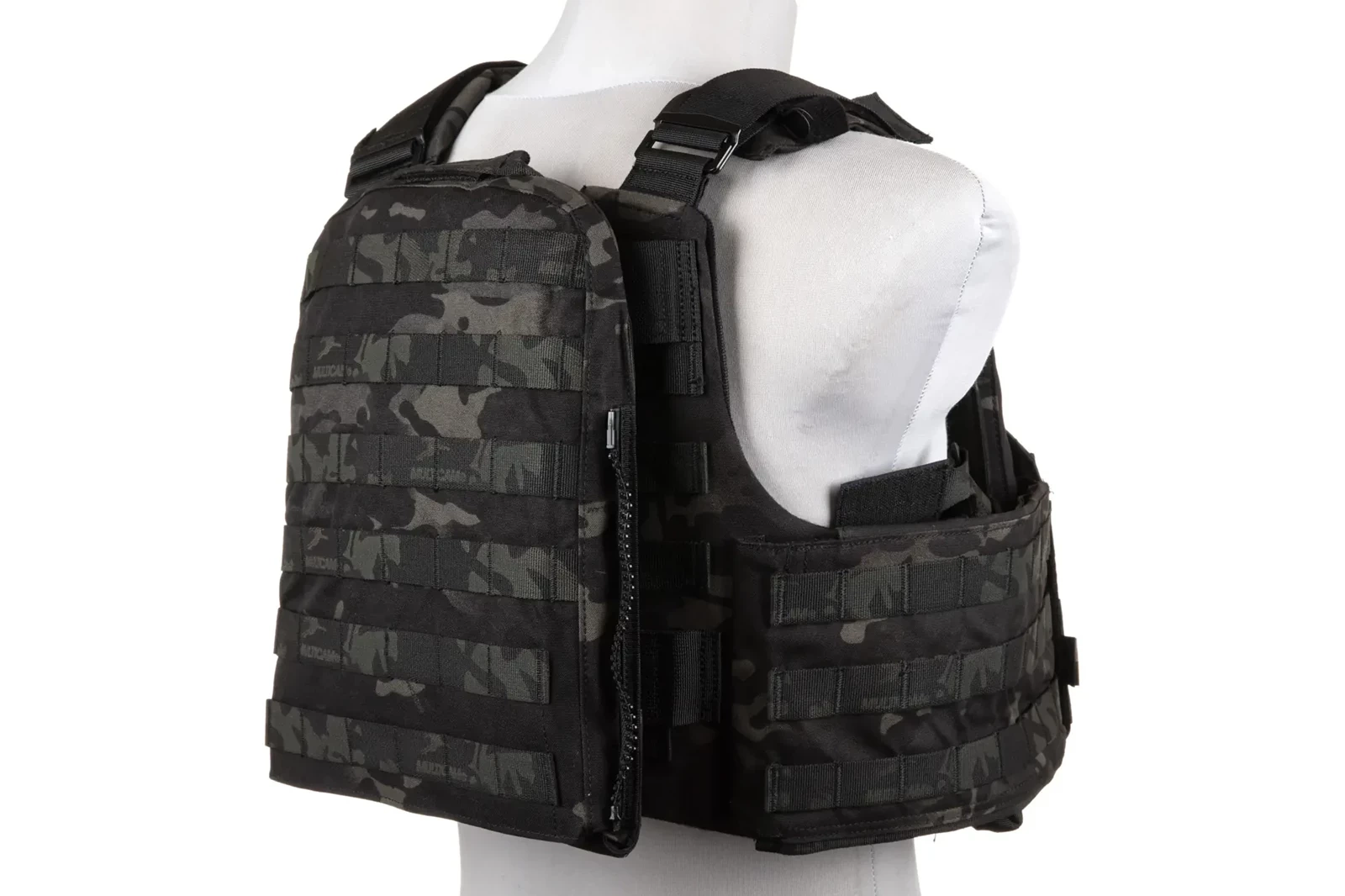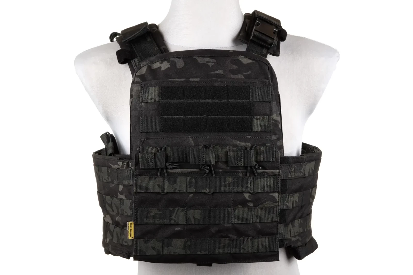 W przedni i tylnym panelu znajdziemy miejsce dla atrap płyty typu SAPI w rozmiarze M. Są one w całości pokryte taśmami zgodnymi z systemem Molle/PALS. W klapie przedniego panelu znajdziemy miejsce na 3 magazynki AR/AK, zabezpieczone dodatkowo linka typu shockcord. Natomiast z tyłu znajdziemy suwaki dla paneli szturmowych czy plecaków. Również na obu panelach możemy znaleźć rzep do przymocowania naszywek czy innych akcesoriów.