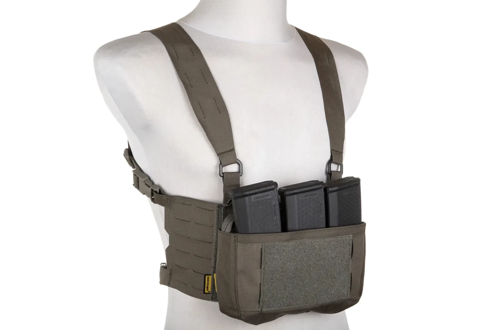 -Platforma typu chest rig z panelami molle na bokach, oraz rzepem pozwalającym na zaczepienie przedniego modułu.