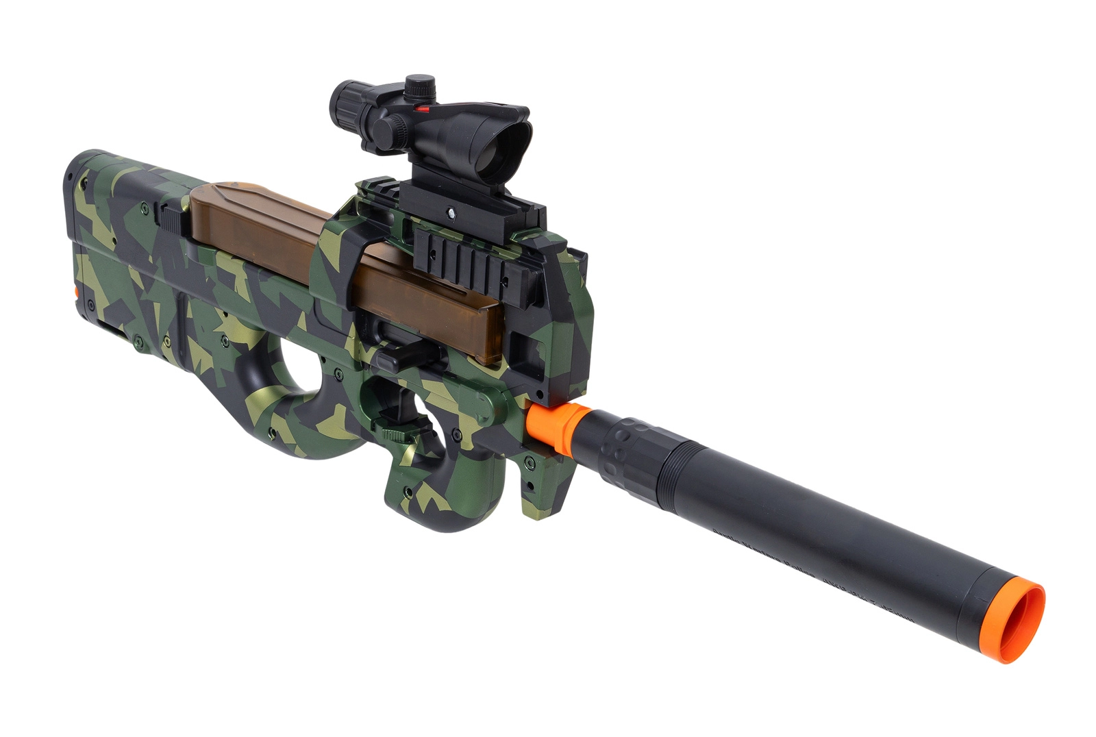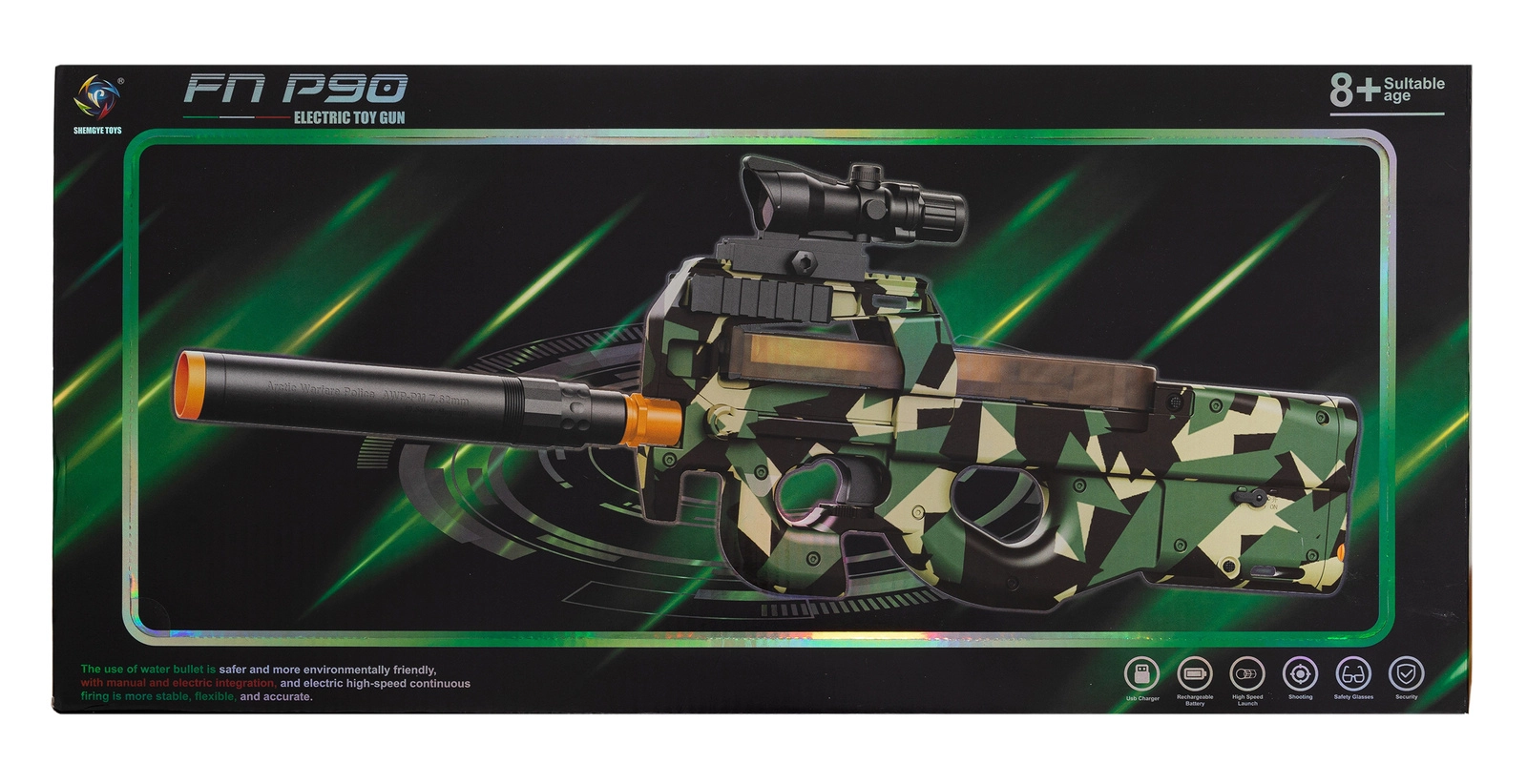 Replika karabinka P90 na żelowe kulki napędzana akumulatorem. Pistolet strzela ogniem ciągłym oraz pojedyńczym!