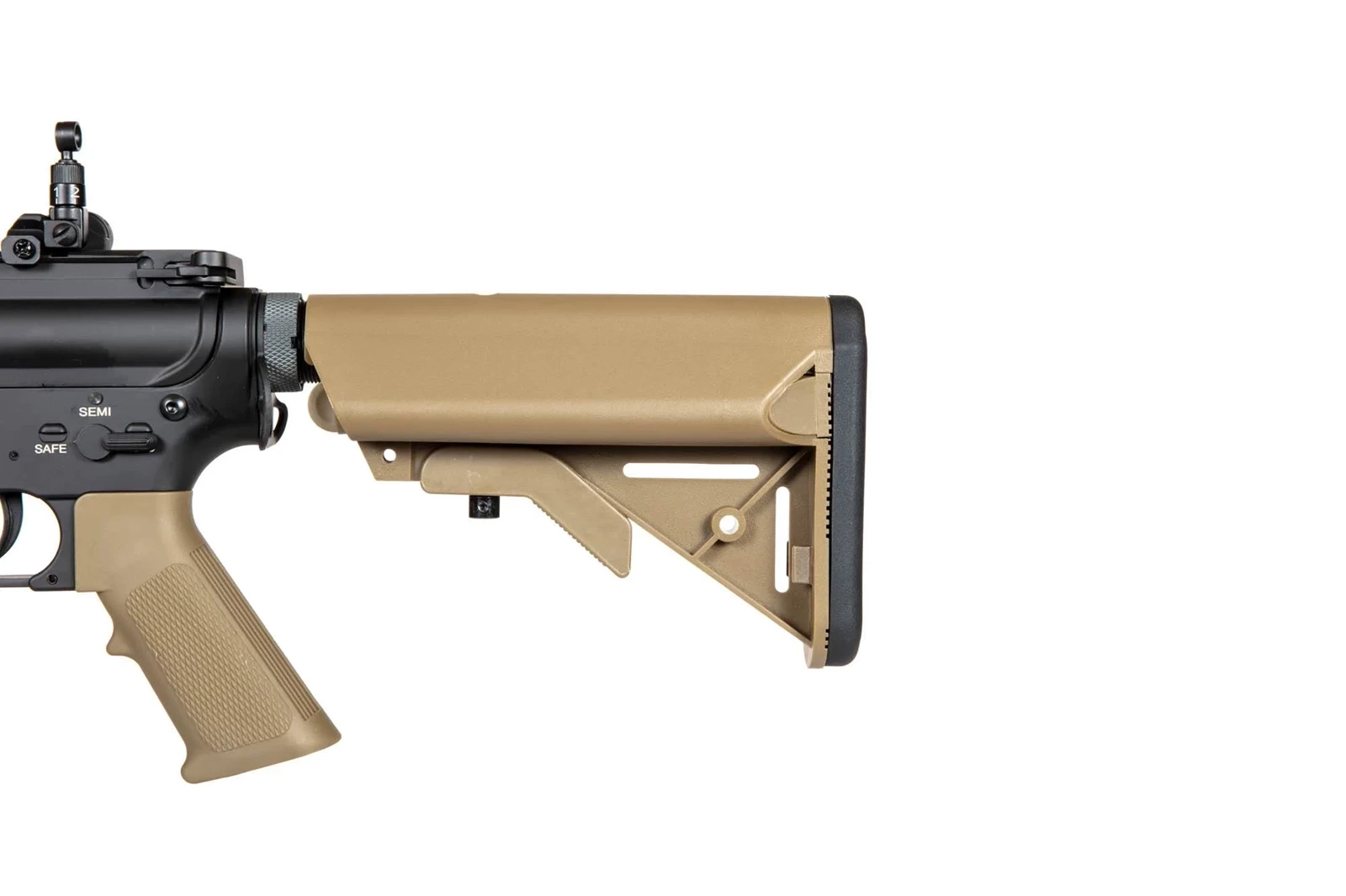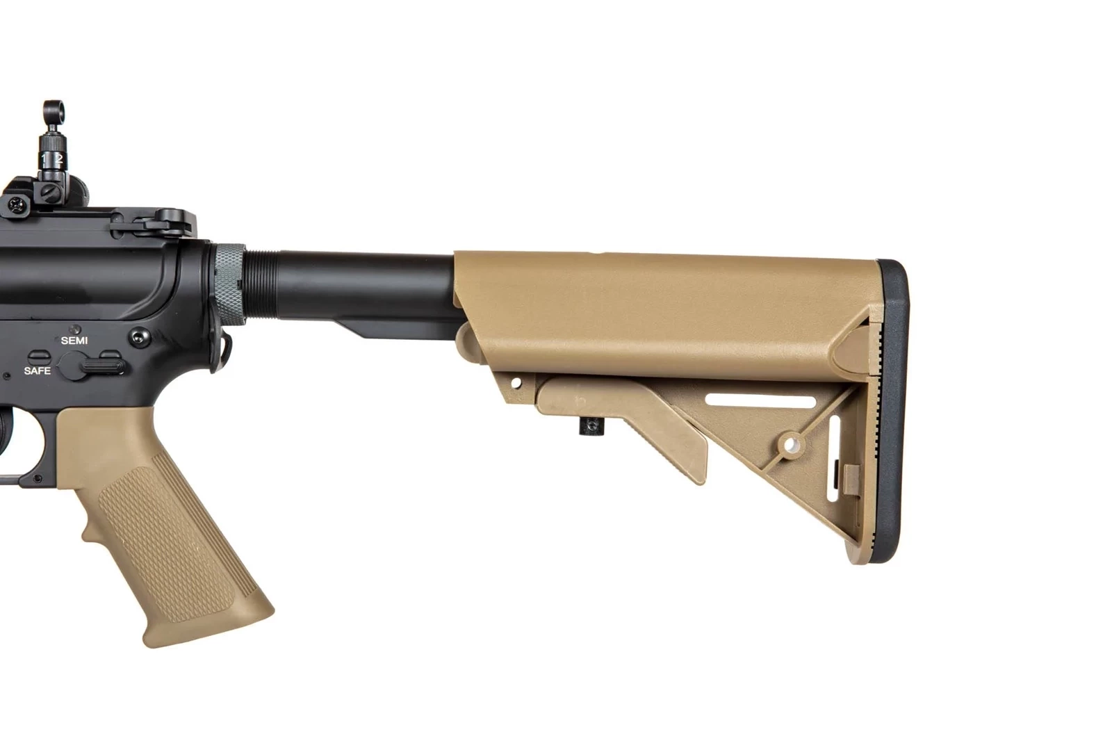 Wersja Half-Tan posiada chwyt pistoletowy, kolbę oraz magazynek wykonane w kolorze tan. Dodatkowo w zestawie znajdują się 2 osłony na szyny RIS, wykonane z miękkiego tworzywa również w kolorze tan. Można je bez problemu przyciąć, tak by pasowały na szyny o różnej długości.