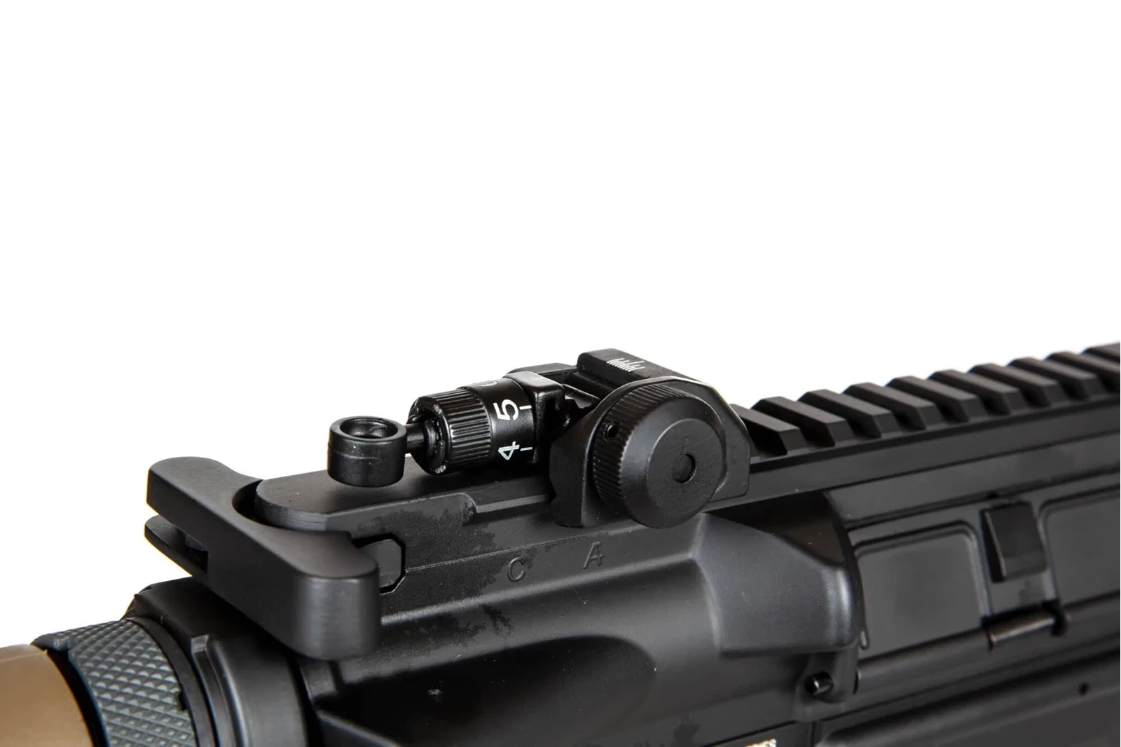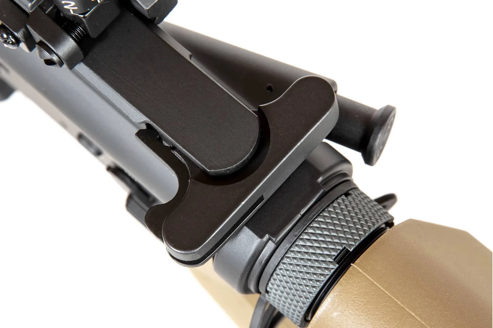 Replika wyposażona została w grzbietową szynę RIS 22 mm, zespół frontowych szyn RIS oraz regulowaną kolbę. Na górnej szynie RIS założone zostały metalowe przyrządy celownicze typu flip-up, mogą one jednak swobodnie być zastąpione przez dowolne optoelektroniczne urządzenie celownicze. Dzięki rozsuwanej kolbie zakończonej stopką o antypoślizgowej fakturze, możliwe jest dostosowanie długości repliki do budowy oraz preferencji strzelca. Standardowy tłumik płomienia osadzony został na 14-milimetrowym lewoskrętnym gwincie, co umożliwia przyłączenie w jego miejsce tłumika dźwięku.