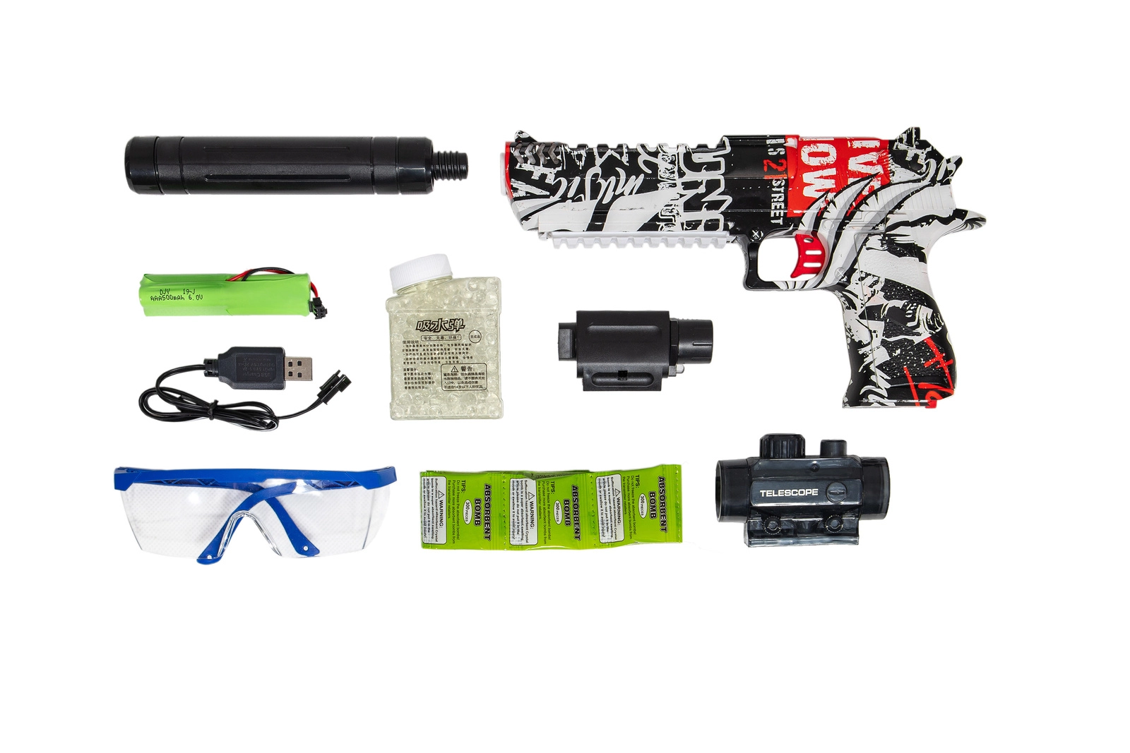 Automatyczny pistolet do zabawy żelowymi kulkami, które nie pozostawiają po sobie śladów ani odbarwień.