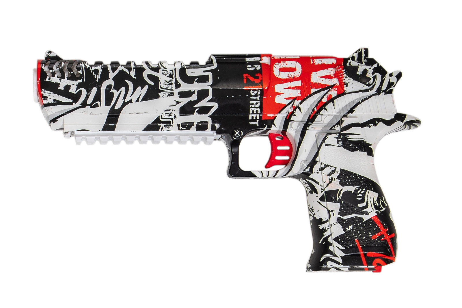 Konstrukcja pistoletu jest wykonana z lekkiego i równocześnie wytrzymałego tworzywa sztucznego ABS co pozwala na zabawę nawet najmłodszym użytkownikom.