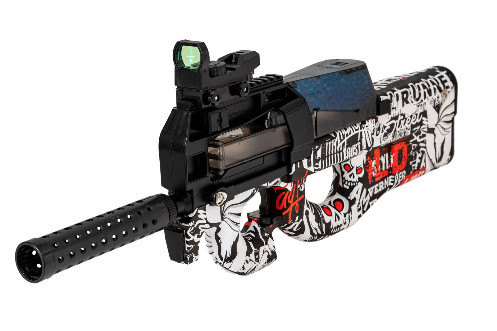UWAGA! ZDJĘCIE POGLĄDOWE. WZÓR MALOWANIA PISTOLETU MOŻE NIEZNACZNIE RÓŻNIĆ SIĘ OD TEGO PRZEDSTAWIONEGO NA FOTOGRAFII. ZESTAW NIE ZAWIERA GOTOWYCH KULEK ŻELOWYCH.