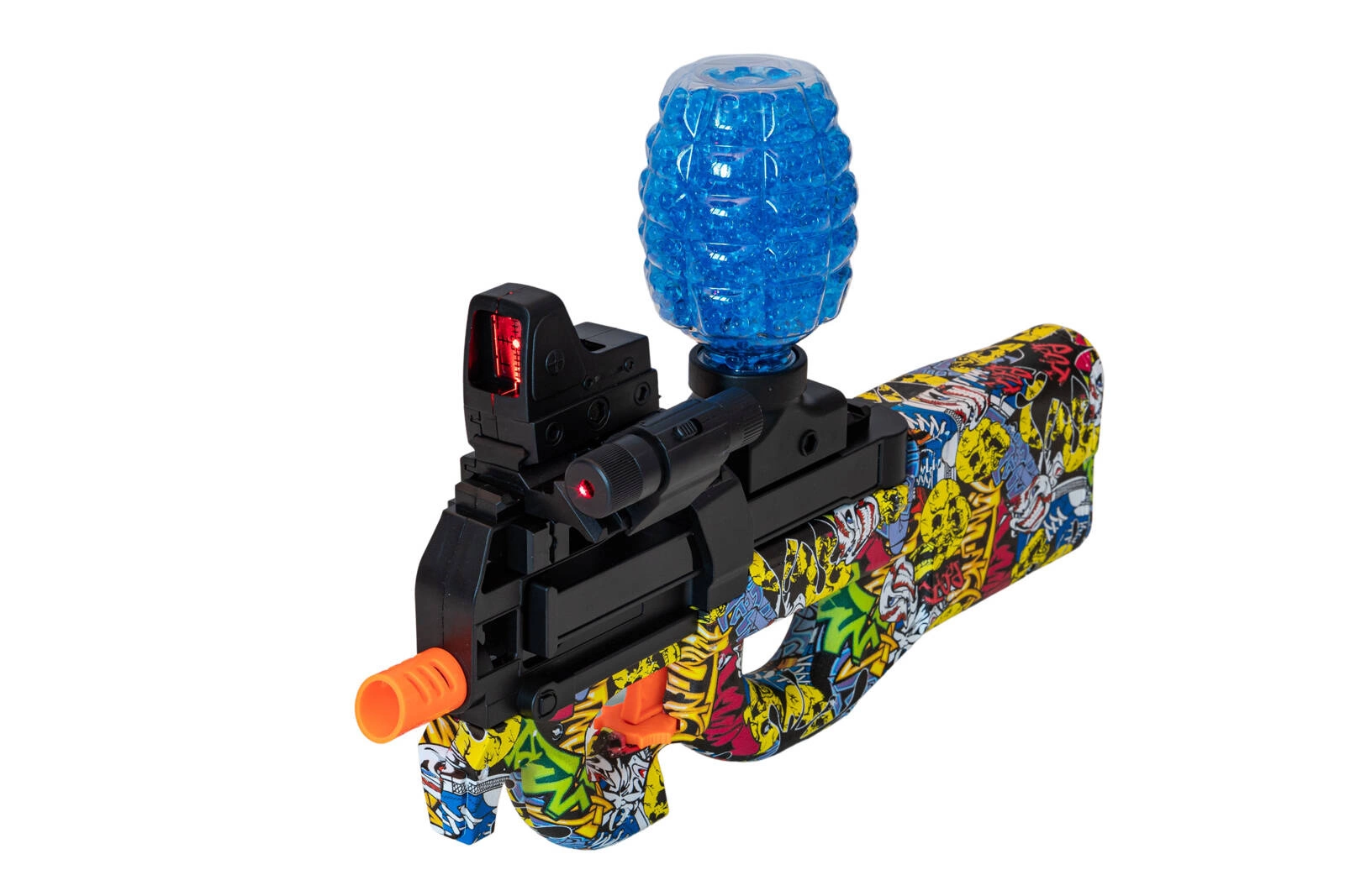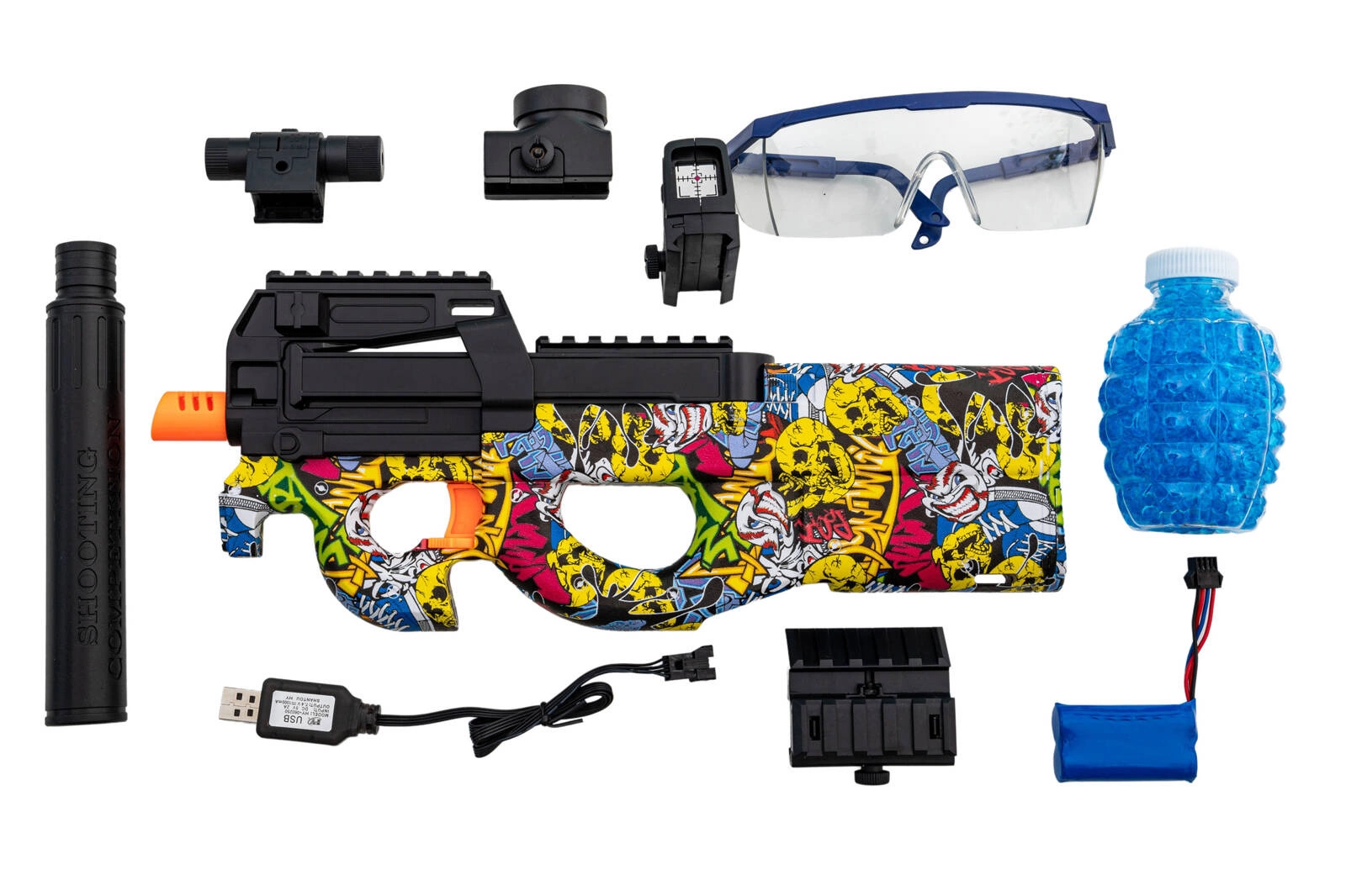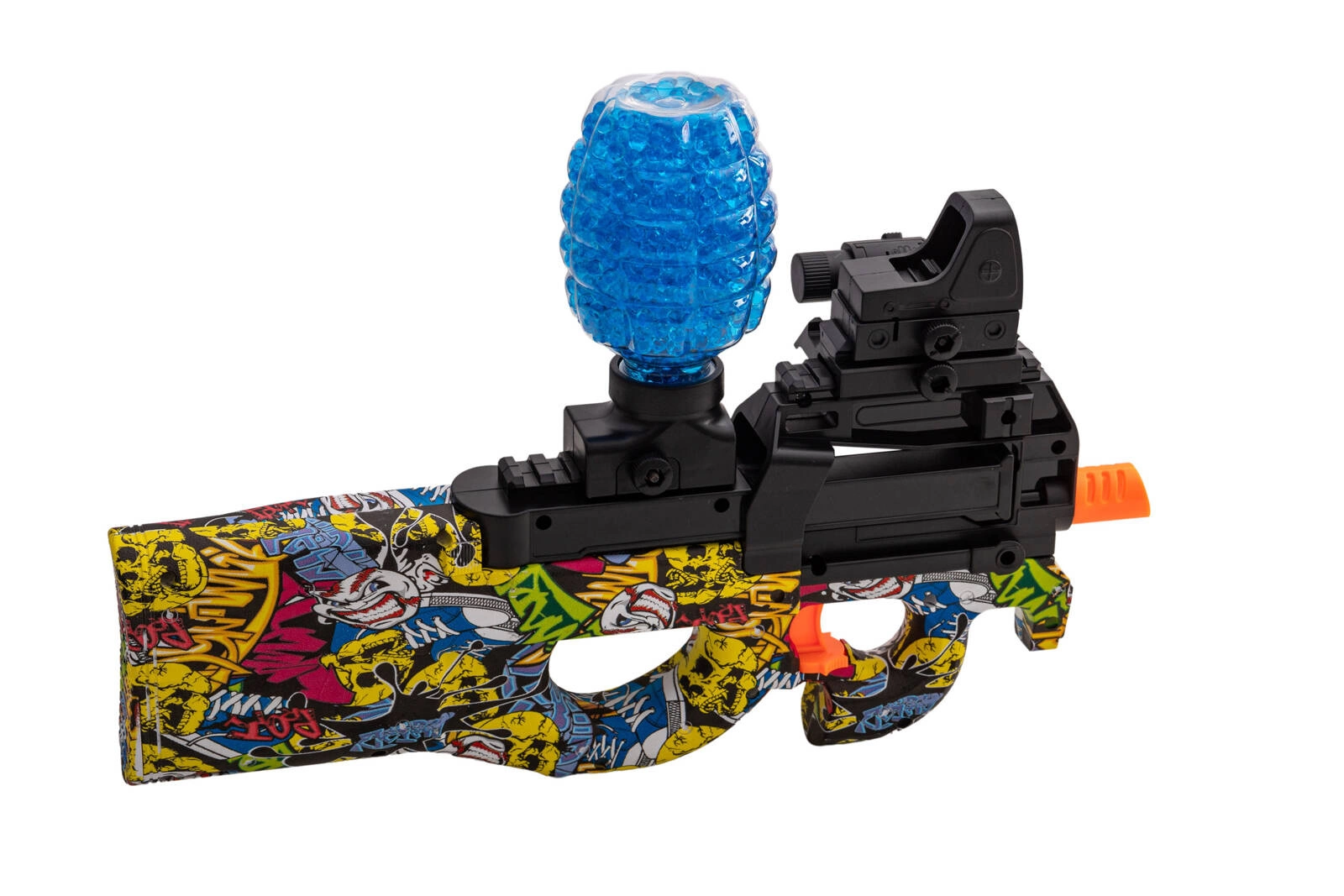 Replika słynnego, belgijskiego karabinka szturmowego P90 na żelowe kulki napędzana akumulatorem. Karabinek strzela ogniem ciągłym!