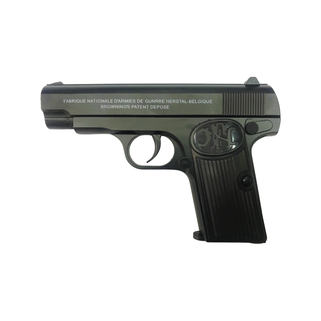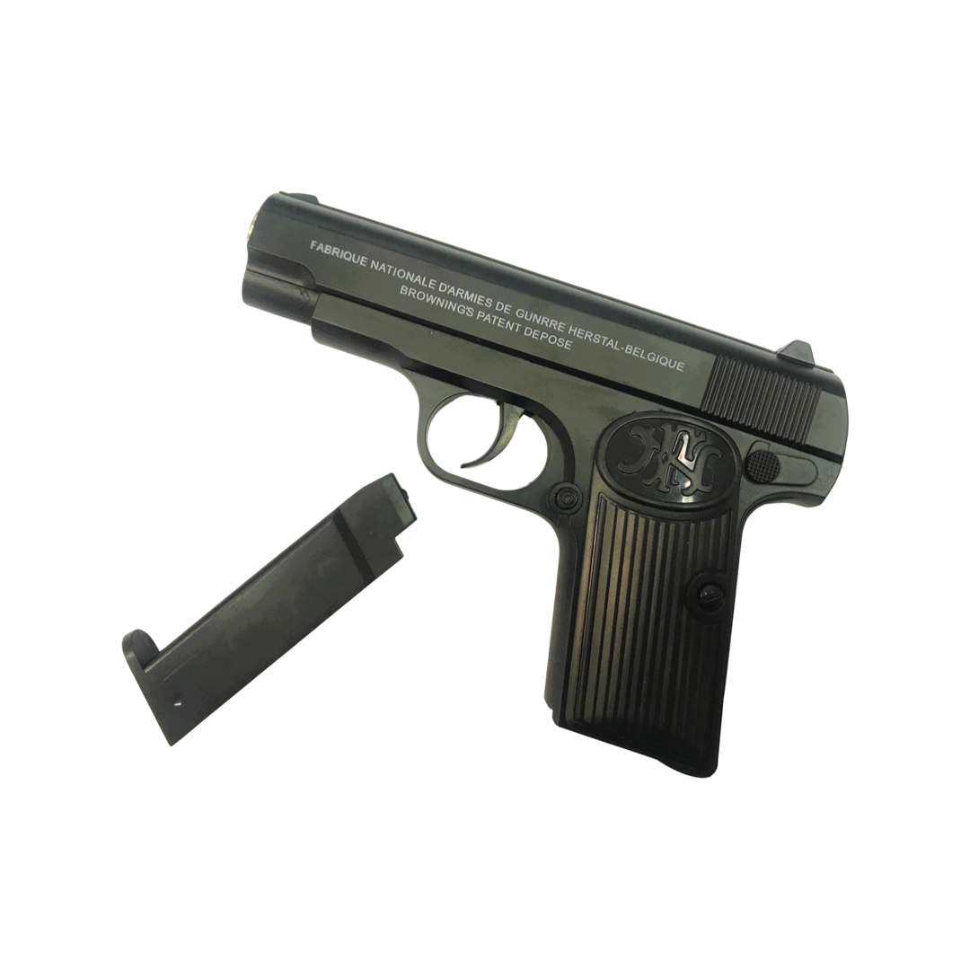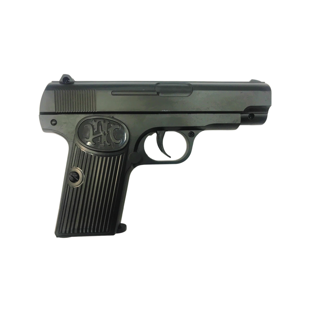 Znakomita replika pistoletu Browning FN1900. Marka Browning należy do belgijskiej firmy Fabrique Nationale de Herstal, a jej znamienite konstrukcje opierają się na projektach amerykanina Johna Browninga. Replika posiada niemal identyczny kształt palnego odpowiednika. Zaletą repliki są oryginalne oznaczenia. Posiada ona także obicie rękojeści wykonane z tworzywa, dzięki czemu chwyt jest wygodniejszy.