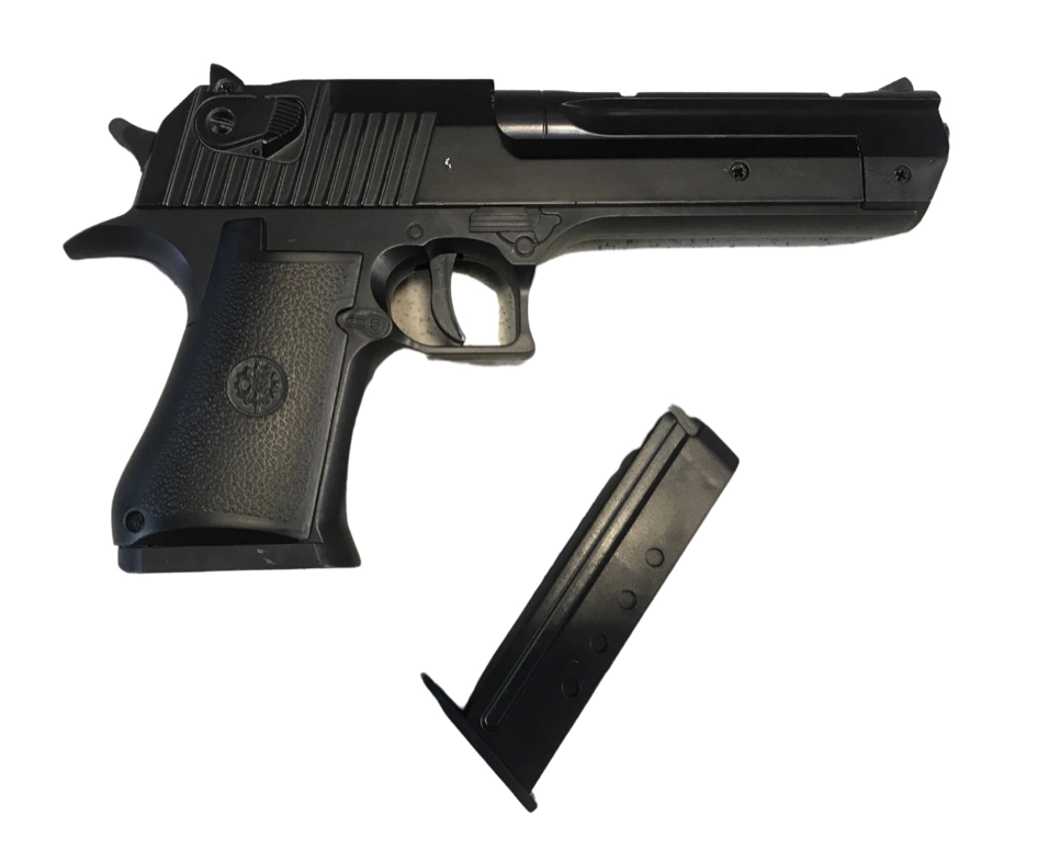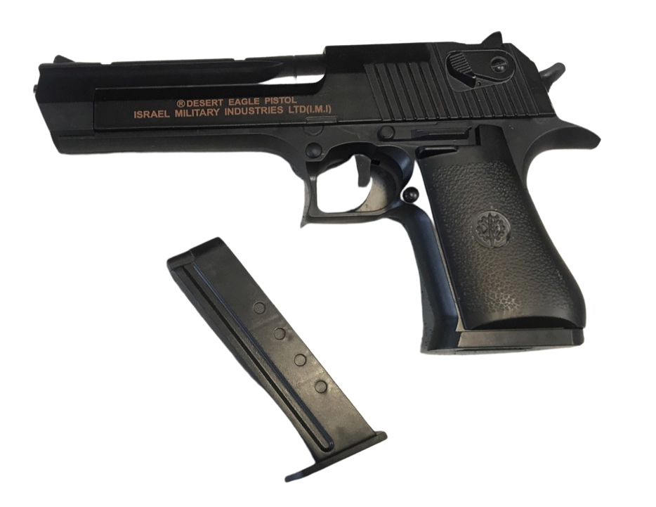 Znakomita replika pistoletu Desert Eagle. Oryginalna broń została zaprojektowana w 1979 roku przez amerykańską firmę Magnum Research, Inc. założoną w St. Paul w stanie Minnesota. Następnie była m.in. produkowana na licencji przez Israel Military Industries. Replika posiada oryginalne oznaczenia i niemal identyczny kształt palnego odpowiednika. Zaletą repliki jest ruchomy kurek na końcu zamka oraz innowacyjny sposób przeładowania (przesuwa się tylko część zamka odsłaniając komorę, co zwiększa realizm korzystania z pistoletu)