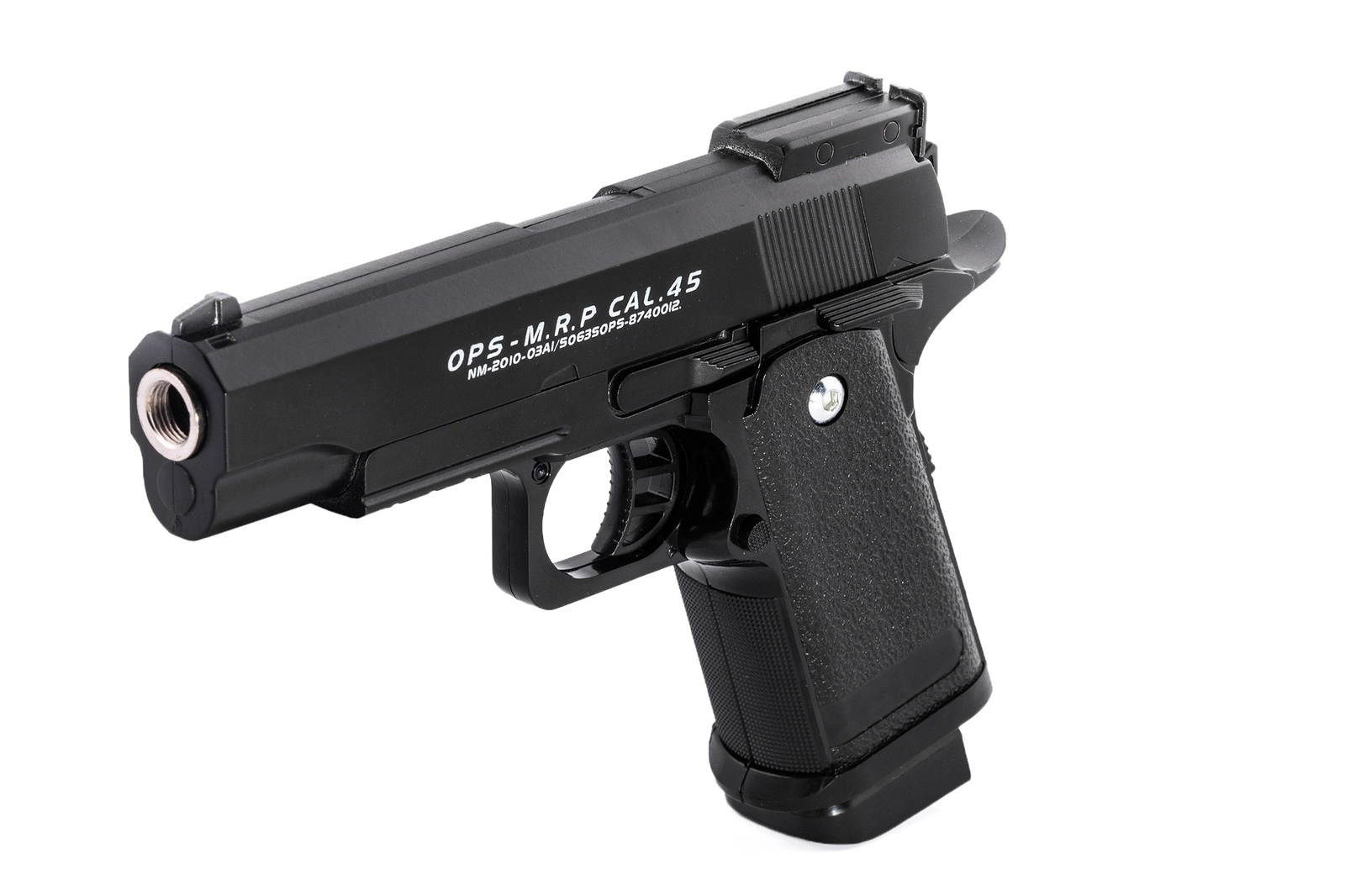 Replika pistoletu Colt 1911 Hi-capa - Colty serii 1911 już od początku produkcji zdobyły renomę jako jeden z najmocniejszych i najbardziej niezawodnych pistoletów. O ich długowieczności świadczą niezliczone modyfikacje i wydawane licencje na produkcje, które powstają do dziś. Znany jest z wielu filmów, gier i rozgrywek AirSoftowych. Replika posiada niewielką szynę RIS i niemal identyczny kształt oryginału.