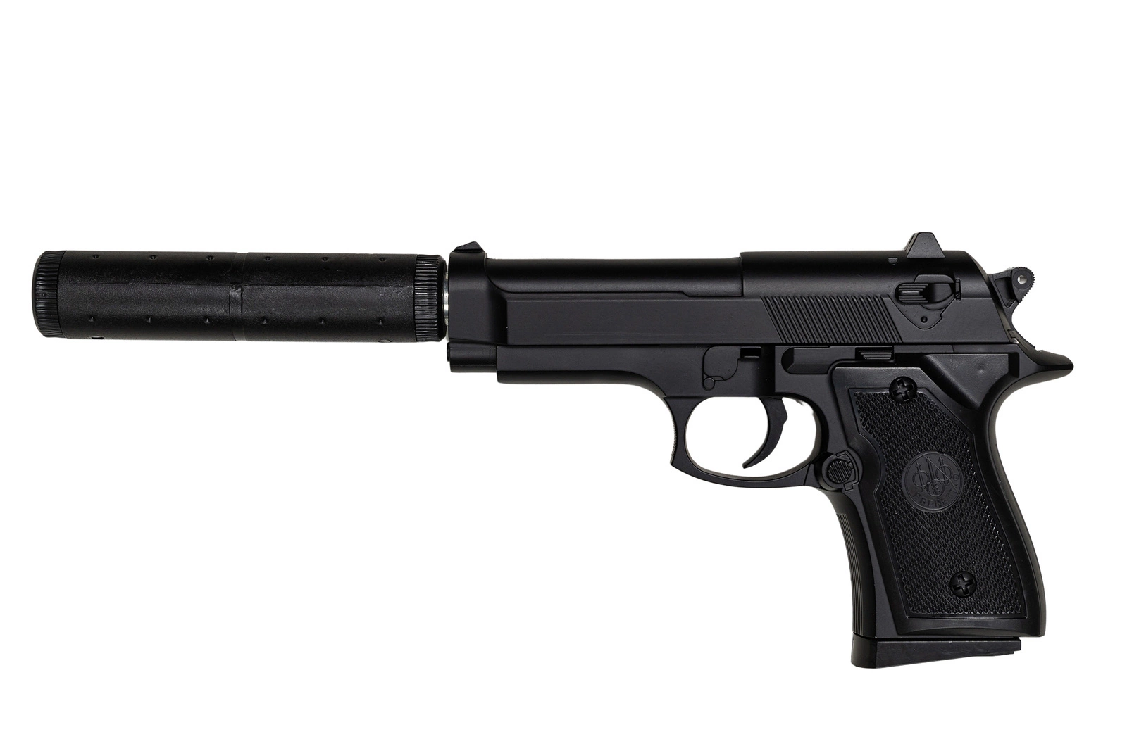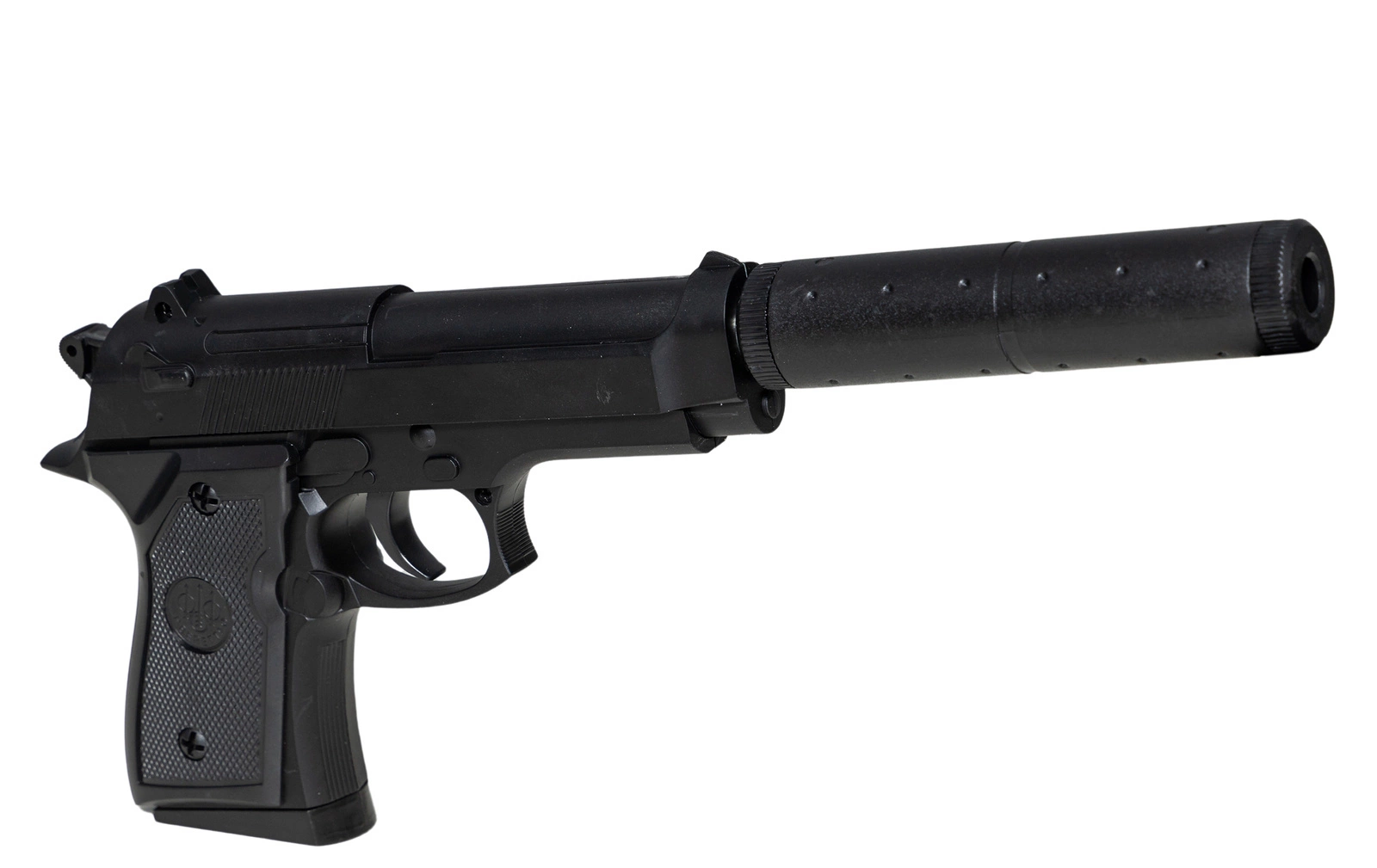 Znakomita replika pistoletu Beretta 92. Pistolety włoskiej firmy Beretta zasłynęły między innymi jako broń podstawowa US Army w tym Navy SEAL. Model 92 stworzono już w 1976r. i do dziś powstają kolejne jego modyfikacje. Powyższy model pojawiał się również w wielu filmach, grach i Sieci. Replika posiada oryginalne oznaczenia i niemal identyczny kształt palnego odpowiednika. Zaletą repliki jest chwyt pistoletowy z okładzinami zapobiegającymi wyślizgnięciu z ręki oraz niewielki rozmiar przystosowany dla młodszych użytkowników.