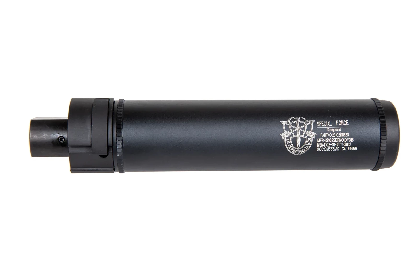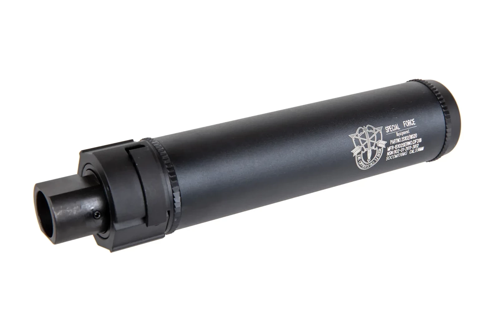 Socom 556 to wykonany w całości z metalu tłumik dźwięku dedykowany do każdego karabinka ASG wyposażonego w lufę zakończoną lewoskrętnym gwintem 14mm.