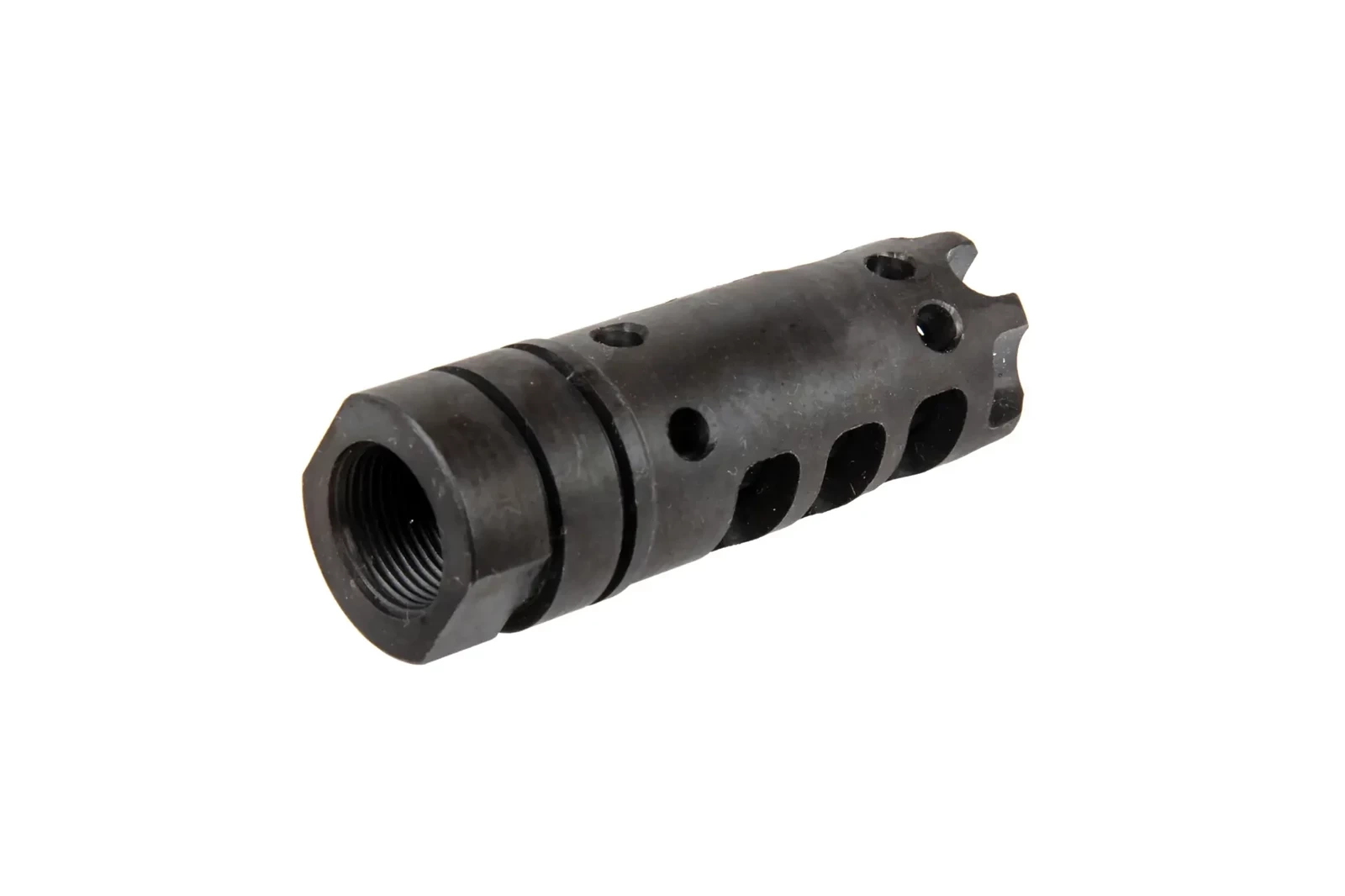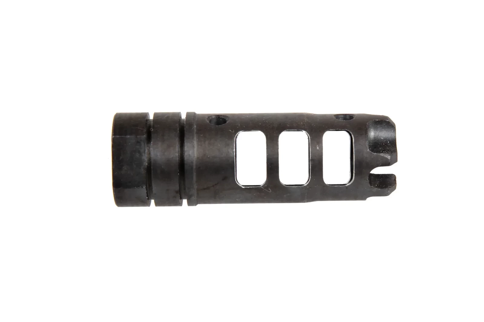 Wysokiej jakości replika urządzenia wylotowego wykonana z oksydowanej stali. W zestawie znajduje się zestaw podkładek/ dystanserów ze stali.