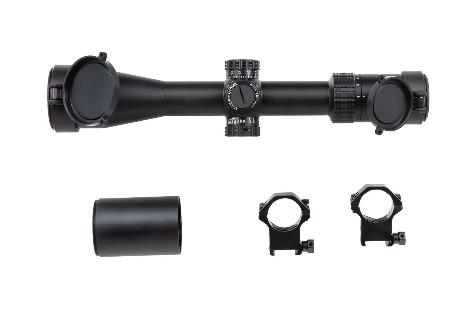 Luneta z powiększeniem x4-16 oraz krzyżem MDL wraz z podziałką została wykonana z wysokiej jakości aluminium lotniczego 6061 T6. Model posiada tubus o średnicy 30 mm oraz wbudowany zakres regulacji ostrości na poziomie 15-600 jardów do nieskończoności, co pozwoli szybko i łatwo dostosować widok przez lunetę do danej sytuacji. Wieżyczki regulacji posiadają prosty sposób blokady, który uniemożliwi zmianę ustawień w trakcie przemieszczania się (w celu zmiany ustawień pokrętła wieżyczki, należy ją "podnieść").