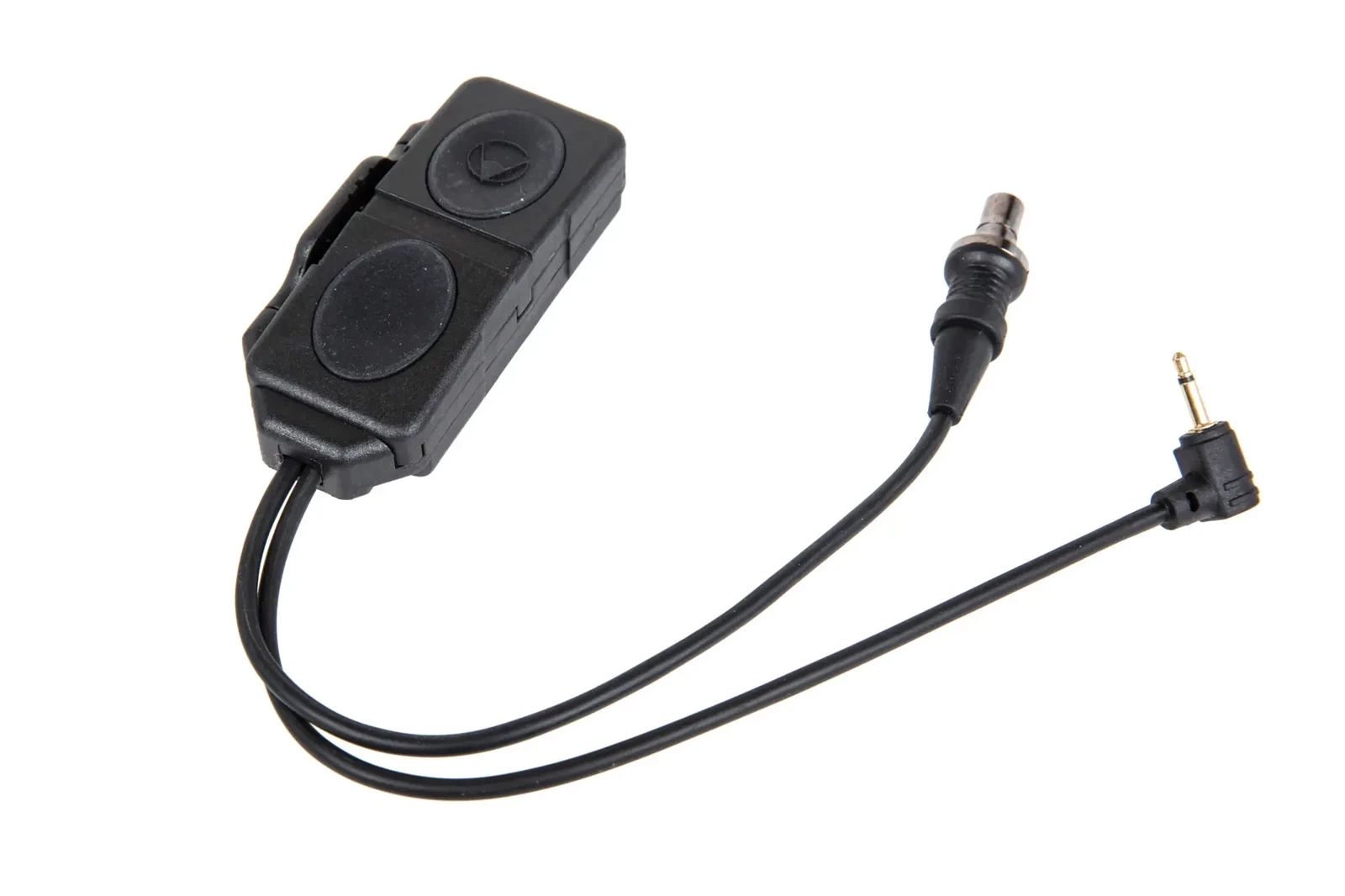 Włącznik do latarek i urządzeń typu PEQ wyposażony w dwa wtyki - 2.5 mm oraz SF. Włącznik został wykonany z wytrzymałego polimeru, guziki z gumy.