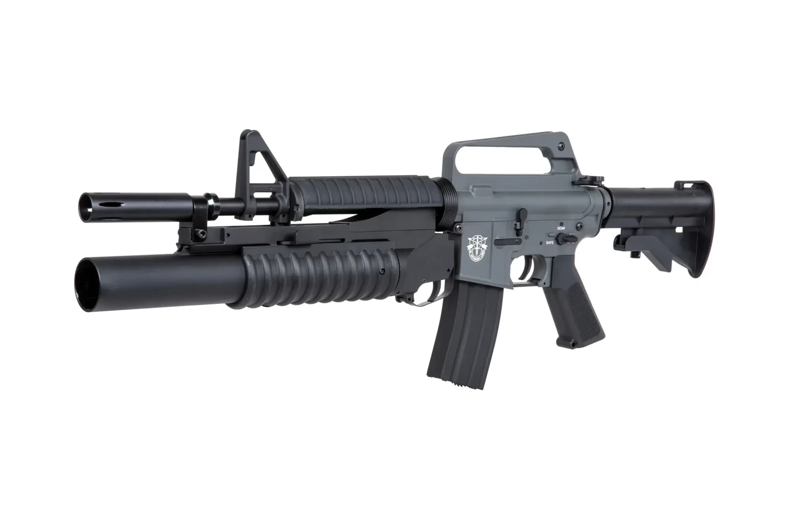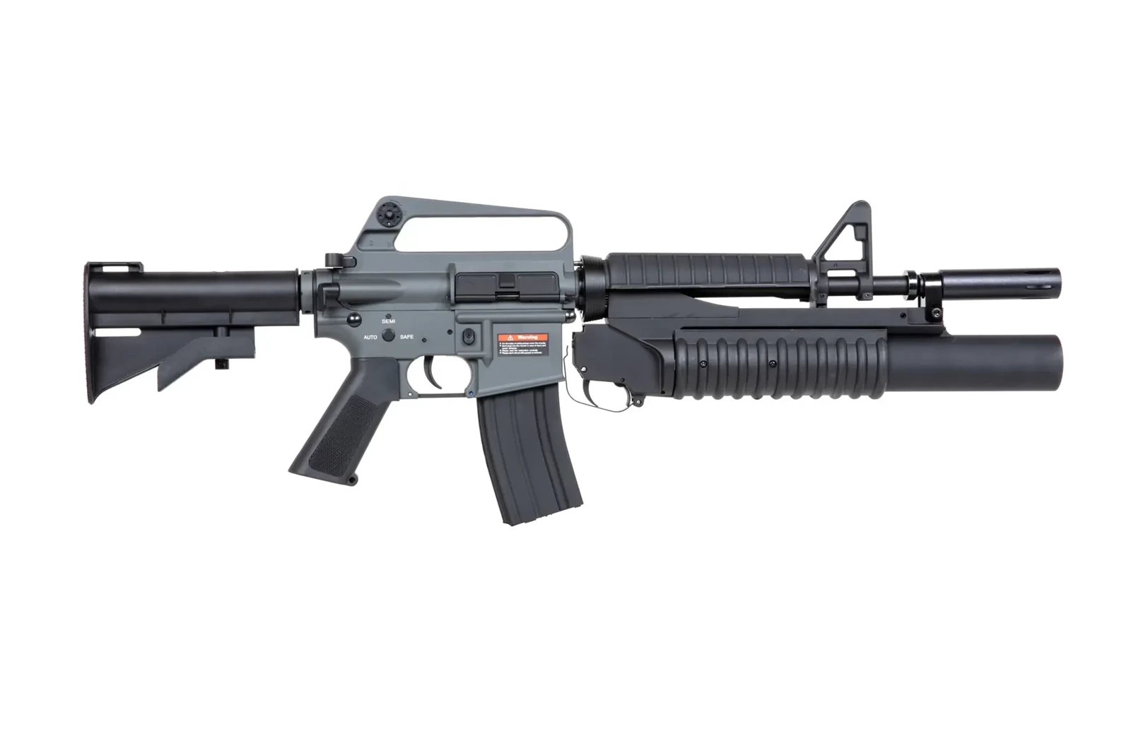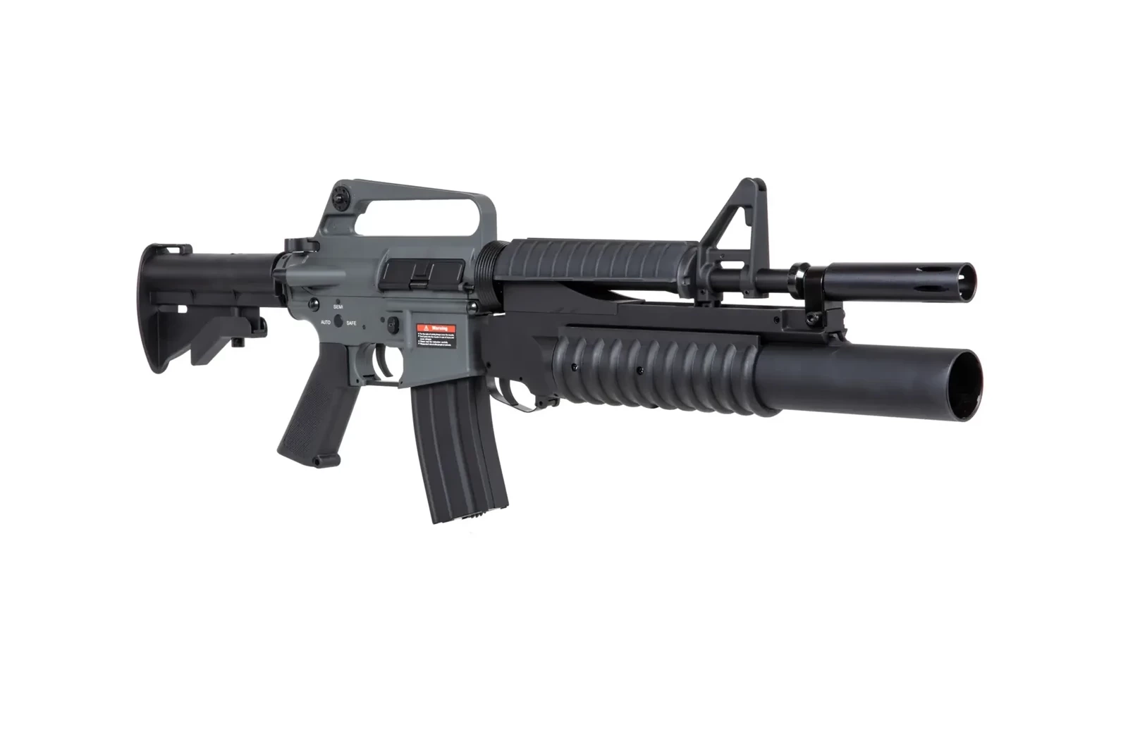 Karabinek wykonany z metalu i tworzywa sztucznego, jest repliką karabinka XM177E1 wraz z dołączonym do niego granatnikiem ASG. Karabinek został wyposażony w funkcjonalny bolt-catch, chwyt o chropowatej powierzchni - przydatnej zwłaszcza w upalne dni, regulowaną kolbę oraz magazynek typu hi-cap.