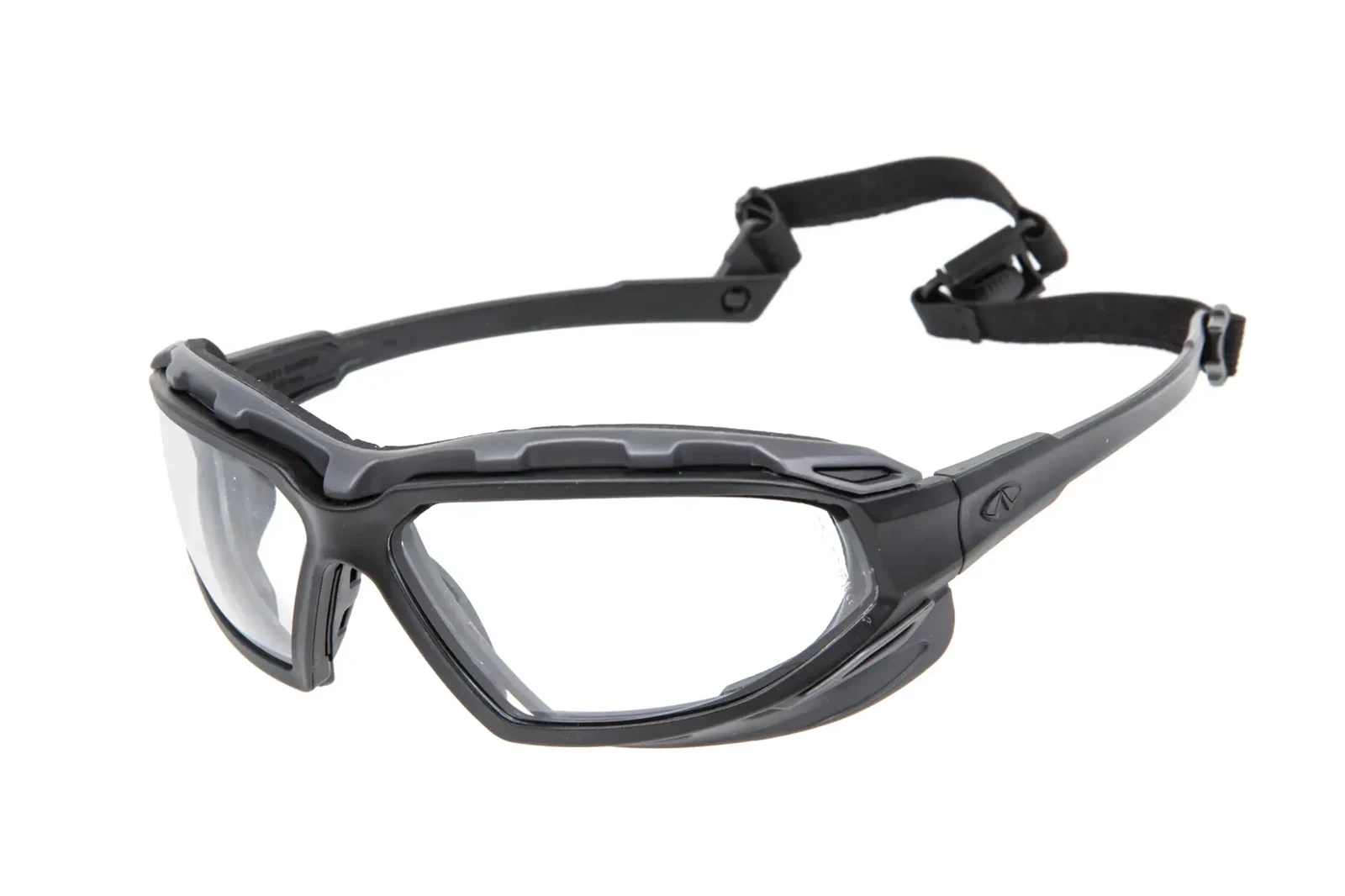 Najwyższej jakości okulary ochronne wykonane z wytrzymałego poliwęglanu w USA przez firmę PYRAMEX. Model Highlander posiada wygodną, miękką gąbkę która zapobiega dostawaniu się do oczu kurzu i innych drobinek brudu. Prócz klasycznych zauszników w zestawie znajdują się elastyczna taśma utrzymująca okulary na głowie. Odporna na zarysowania szybka posiada ochronę 99% UVA/B/C przed promieniami słonecznymi.