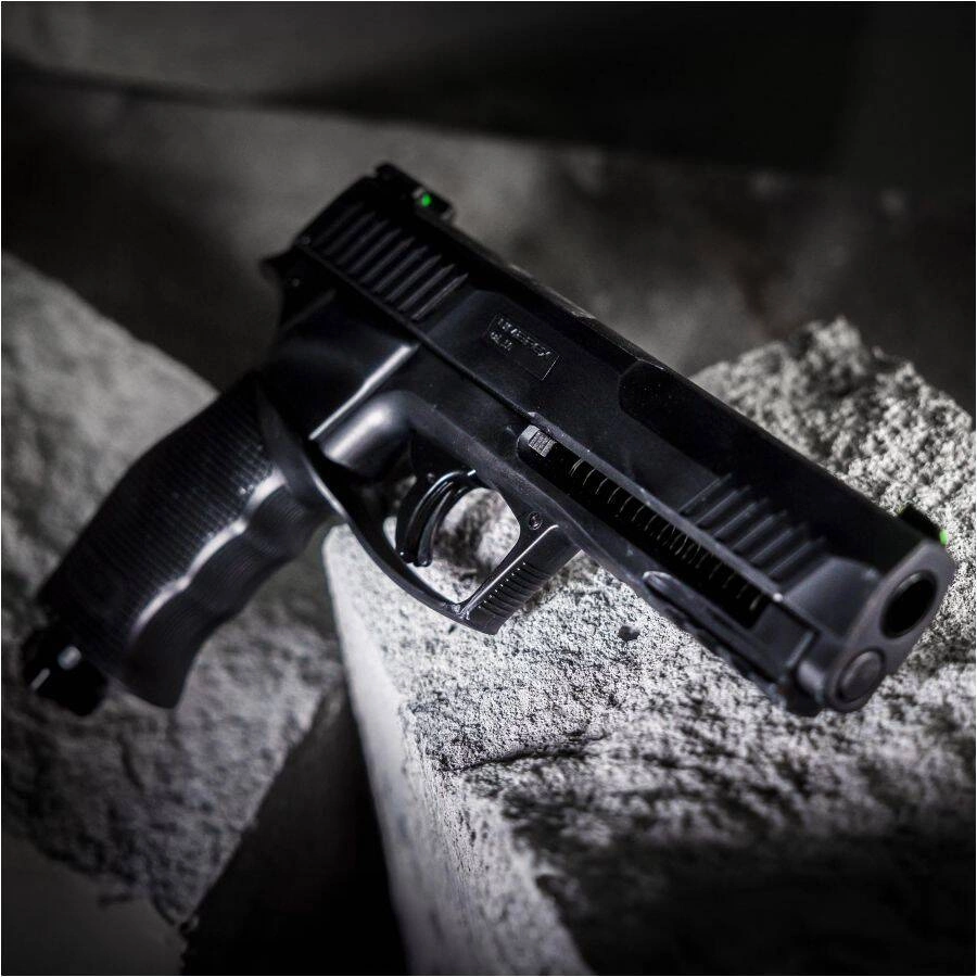 - Bezpieczeństwo: funkcjonalny bezpiecznik spustowy, mechanizm DAO (Double Action Only) dla dynamicznego oddawania strzałów.