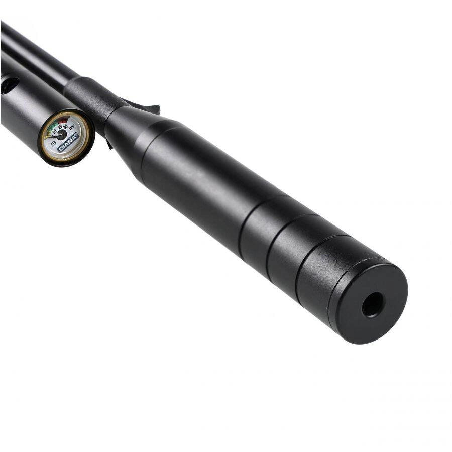 Karabinek został wyposażony w precyzyjnie bruzdowaną lufę o długości 480 mm, co ma znaczący wpływ na celność i powtarzalność strzałów. Na zakończeniu lufy znajduje się tłumik dźwięku obniżający odgłos wystrzału oraz pełniący funkcję bazę montażowej dla muszki. Wiatrówka Diana PCP Stormrider jest wielostrzałowa dzięki zastosowaniu obrotowego, aluminiowego magazynka o pojemności 7 śrutów. Po wsunięciu magazynka do zamka zostaje on zabezpieczony magnetycznie. Do przeładowania śrutu służy boczna dźwignia (podobnie jak w sztucerach). Repetowanie jest płynne i lekkie, dlatego strzelec może łatwo przeładować karabinek bez odrywania wzroku od celu. W zestawie oprócz 9 strzałowego magazynka znajduje się również magnetyczna wkładka jednostrzałowa. Dzięki niej mamy pewność, że śrut zostanie prawidłowo wprowadzony do komory bez obaw o jego zniekształcenie lub zacięcie. Do strzelania zalecamy używania wyłącznie śrutu diabolo w wersji płaskiej lub półokrągłej.