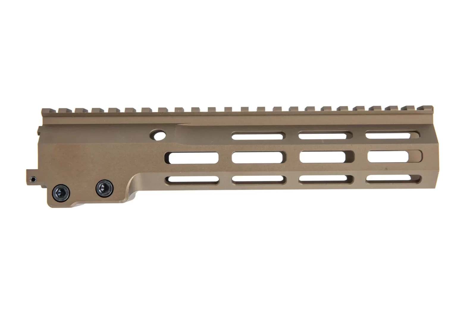 Wyposażona w system montażowy M-LOK 10.5", frontowa szyna RIS od marki Specna Arms. Szyna ma długość 235 mm i została wykonana z metalu. Produkt dedykowany jest do mocowania w replikach typu M4/M16. W skład zestawu wchodzą wszystkie niezbędne do montażu elementy.