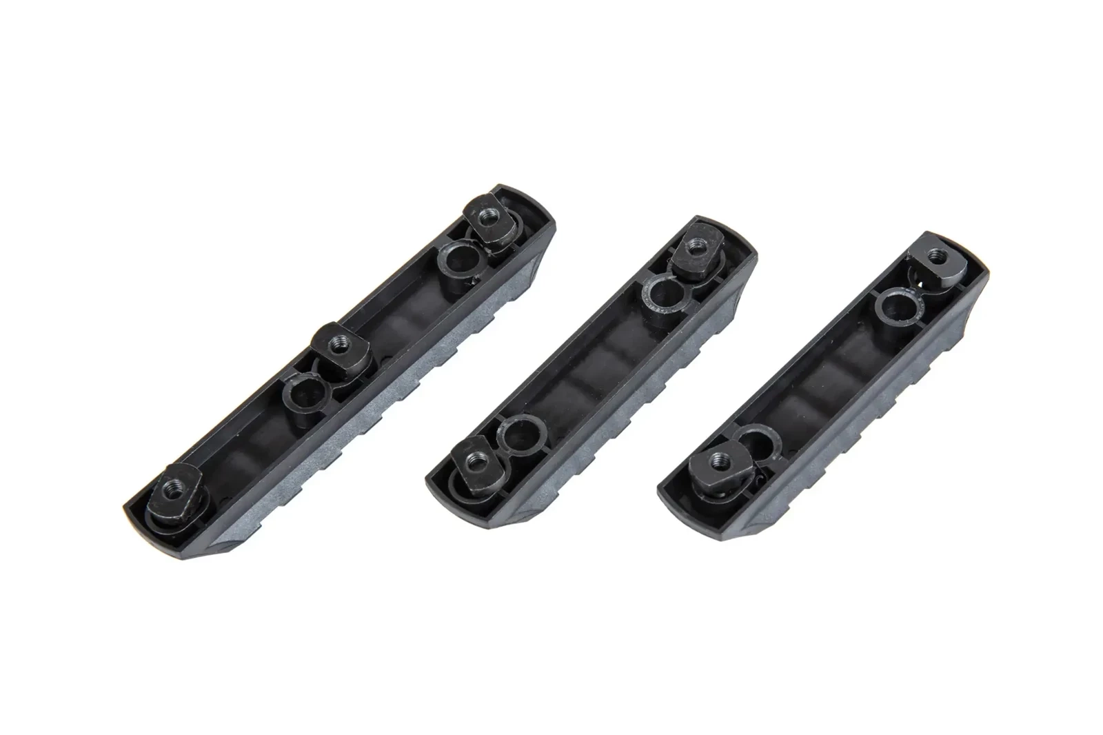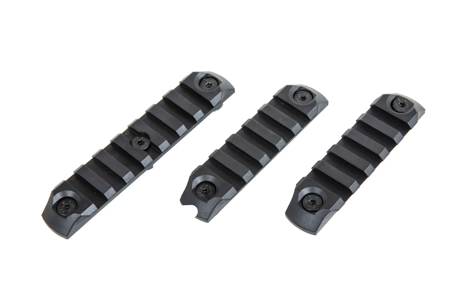 Zestaw składający się z trzech szyn RIS wykonanych z tworzywa o długościach 7,5cm oraz 9,5cm przeznaczonych na szyny MLOK.