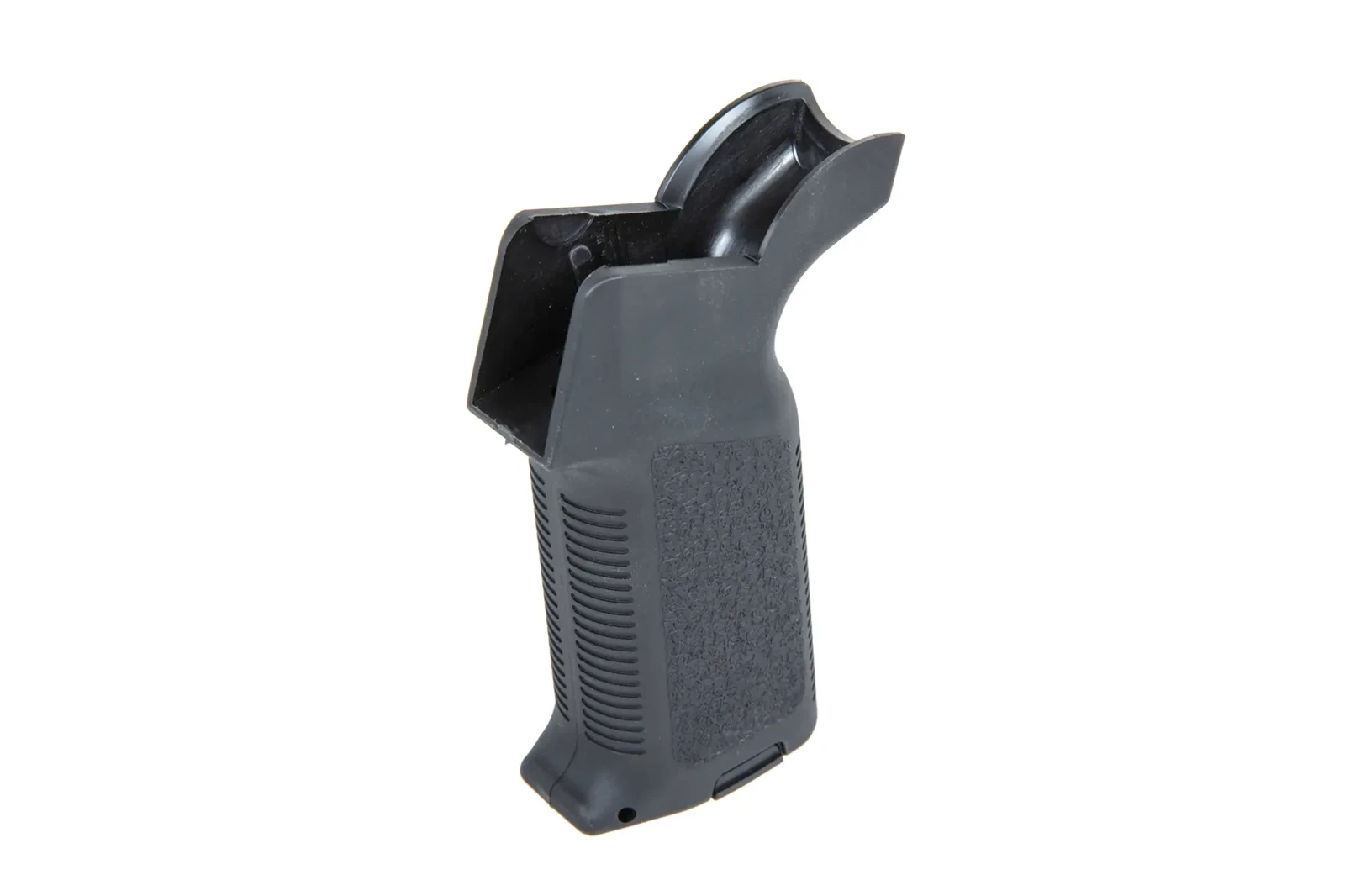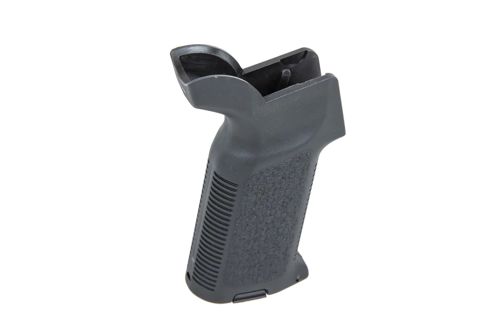Wykonany z wytrzymałego polimeru chwyt pistoletowy znany z serii Specna Arms Prime™. Chwyt łączy w sobie ergonomię oraz funkcjonalność dzięki swojej konstrukcji. Model został wyposażony otwieraną stopkę zabezpieczoną metalowym zatrzaskiem, dzięki temu proces ułożenia kabli oraz poziomowania silnika został znacznie ułatwiony.