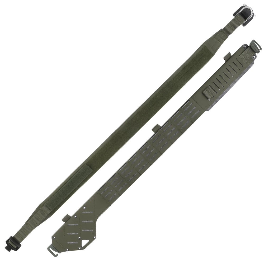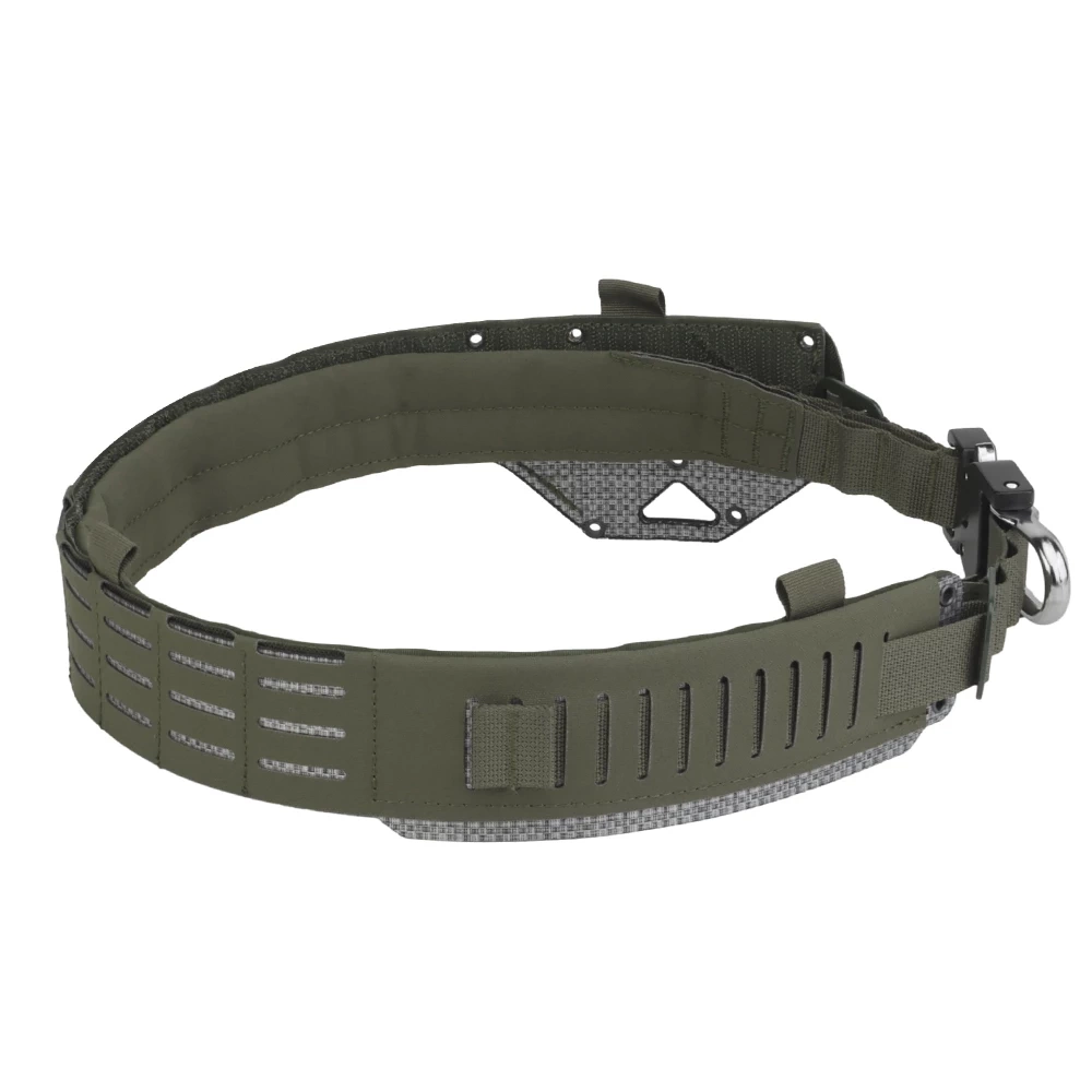 -Pas zewnętrzny o szerokości 50mm , usztywniony termoplastyczną wkładką. Posiada trzy rzędy slotów w systemie molle laser-cut