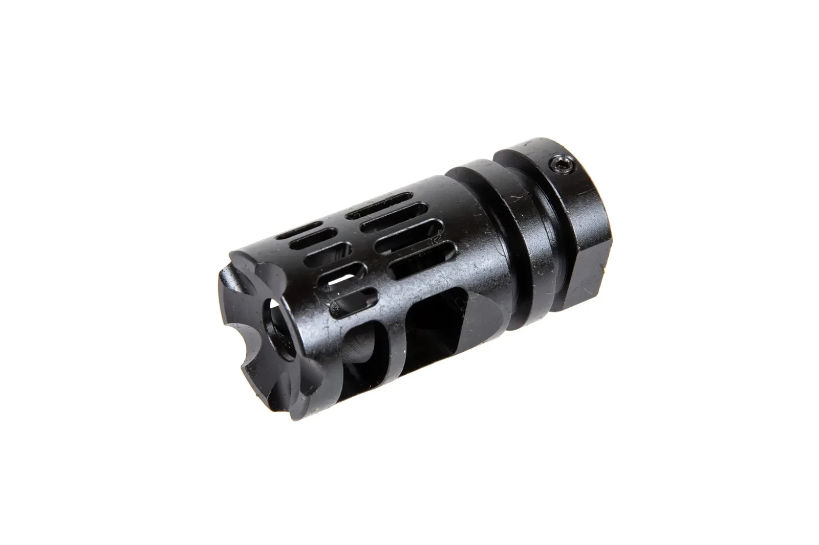 Wysokiej jakości replika urządzenia wylotowego wykonana z oksydowanej stali. W zestawie znajduje się podkładka/ dystanser.