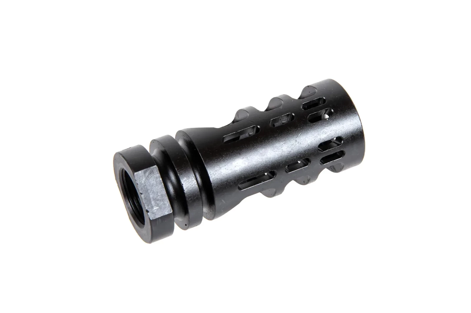 Wysokiej jakości replika urządzenia wylotowego wykonana z oksydowanej stali. W zestawie znajduje się podkładka/ dystanser.