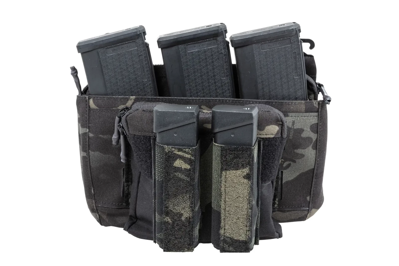 W zestawie dołączono dodatkowo kieszonkę zamykaną na zamek błyskawiczny wraz z ładownicą na dwa magazynki pistoletowe. Użytkownik może bez problemu przypiąć kieszonkę do rzepa na przodzie panelu lub wykorzystać wspomnianą już przegrodę. Tył produktu posiada obszerny rzep, który umożliwi montaż na np. Plate Carrierze.