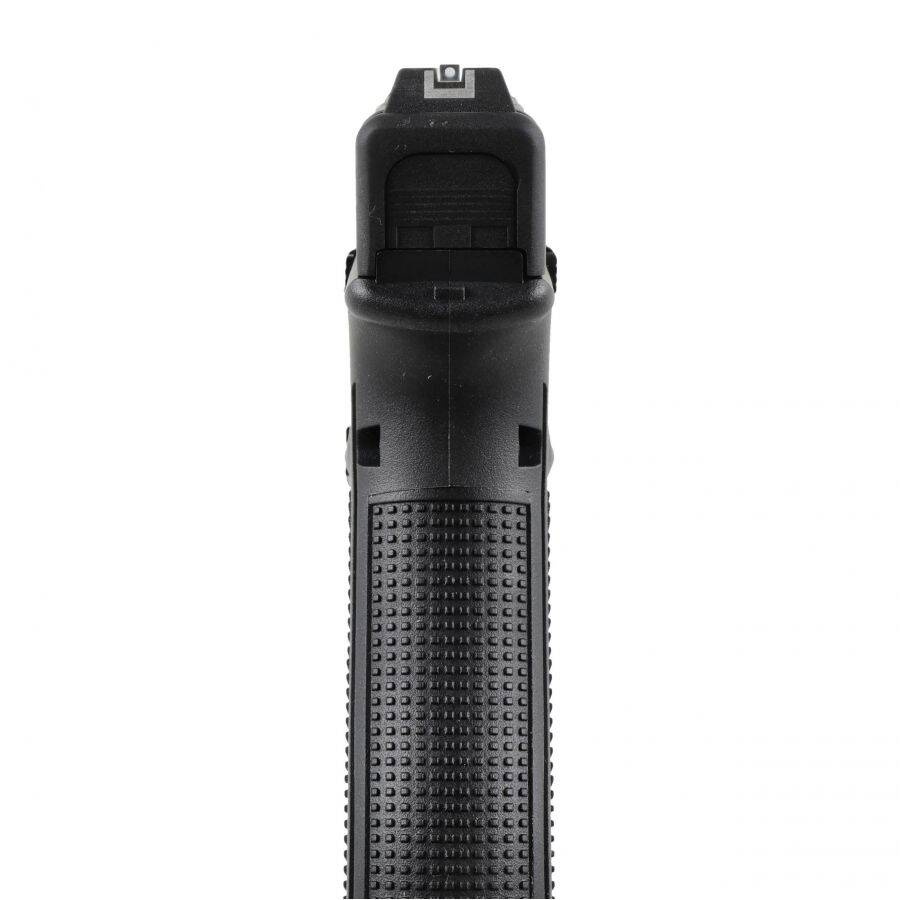 Pistolet wykorzystuje stałe przyrządy celownicze tj. muszkę z białą kropką oraz szczerbinkę z ramką. Kontrastowe oznaczenia przyspieszają zgrywanie przyrządów, pozwalają także na strzelanie przy słabym lub szczątkowym świetle. Ponadto umieszczone na zamku podcięcie MOS umożliwia montaż kolimatora w standardach Docter, Trijicon, C-More lub Leupold. W przedniej części szkieletu znajduje się krótka szyna montażowa Picatinny pozwalająca na wykorzystywanie dodatkowych akcesoriów strzeleckich np. laserowego wskaźnika celu lub latarki. Na zamku oraz szkielecie wiatrówki naniesiono licencjonowane oznaczenia firmy Glock, oraz numer seryjny pistoletu. Wiatrówka ma dodatkowe zabezpieczenie w postaci bezpiecznika suwakowego  (przed szyną), który blokuje działanie mechanizmu spustowego.