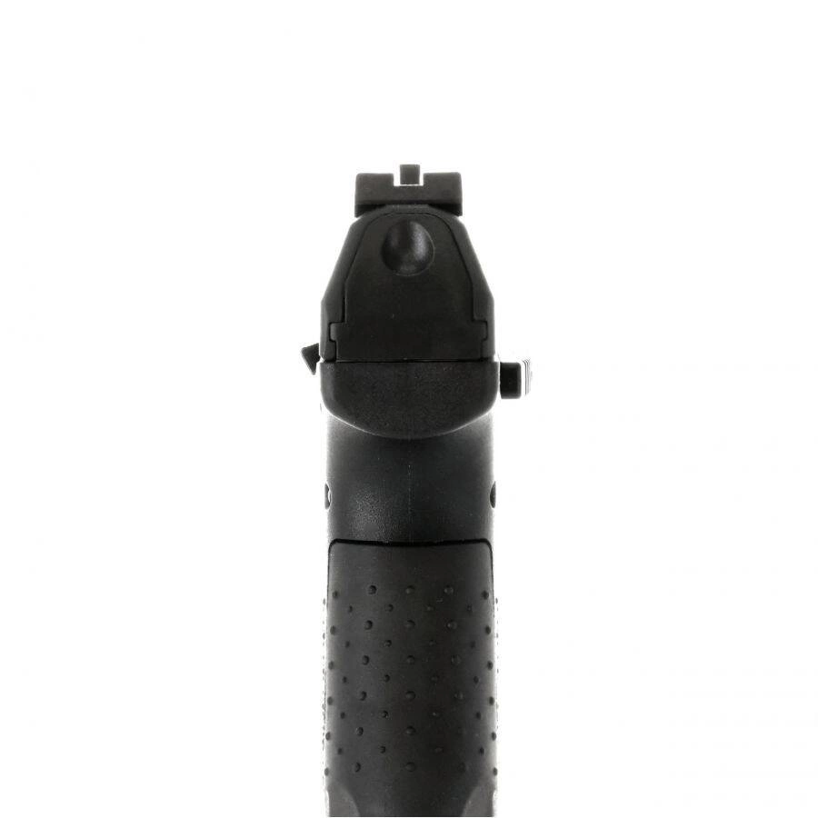 Zamek pistoletu jest żebrowany w tylnej części, co ułatwia przeładowanie. Wszystkich pasjonatów broni i militariów z pewnością ucieszy fakt, że na wiatrówce naniesiono licencjonowane oznaczenia producenta Walther.