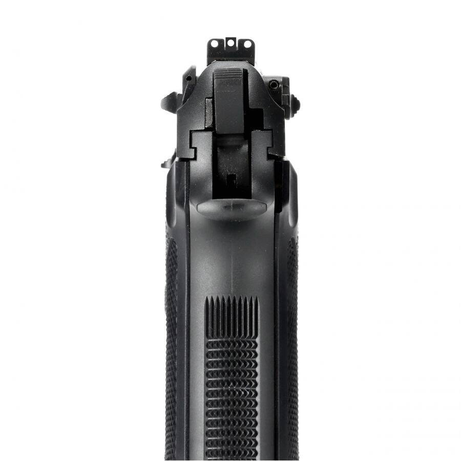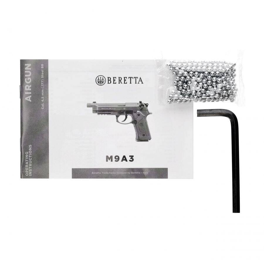 Wiatrówkę wykonano w całości z metalu (poza okładzinami rękojeści), dlatego Beretta M9A3 FM 4,5 mm z pewnością przypadnie do gustu osobom szukających solidnych i cięższych konstrukcji. Wysoką jakość podkreśla frezowany zamek oraz doskonałe spasowanie i odwzorowanie wszystkich detali, wiernie przeniesionych z bojowej Beretty M9 używanej w US Army. Dwustronny bezpiecznik skrzydełkowy umożliwia wygodną obsługę strzelcom prawo i leworęcznym. Na muszce i szczerbinie naniesiono białe kropki, ułatwiające szybkie zgrywanie przyrządów na celu.