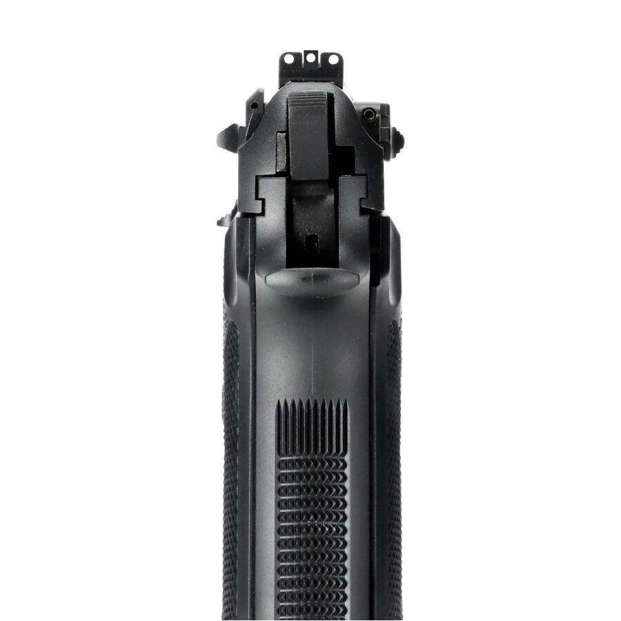 Wiatrówkę wykonano w całości z metalu (poza okładzinami rękojeści), dlatego Beretta M9A3 FM 4,5 mm z pewnością przypadnie do gustu osobom szukających solidnych i cięższych konstrukcji. Wysoką jakość podkreśla frezowany zamek oraz doskonałe spasowanie i odwzorowanie wszystkich detali, wiernie przeniesionych z bojowej Beretty M9 używanej w US Army. Dwustronny bezpiecznik skrzydełkowy umożliwia wygodną obsługę strzelcom prawo i leworęcznym. Na muszce i szczerbinie naniesiono białe kropki, ułatwiające szybkie zgrywanie przyrządów na celu.